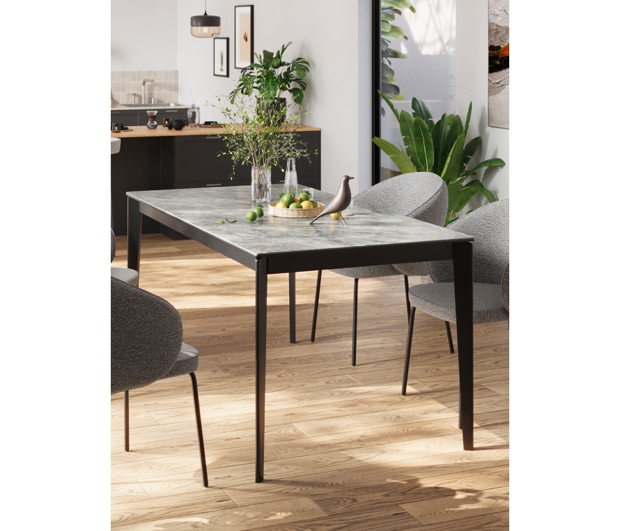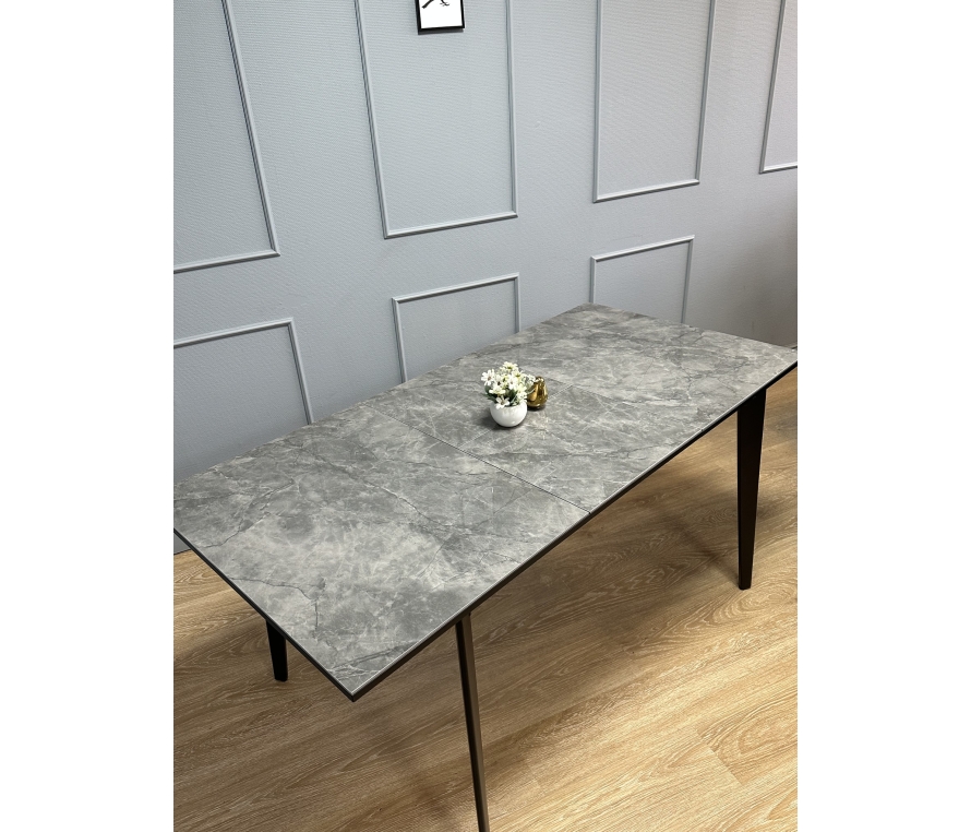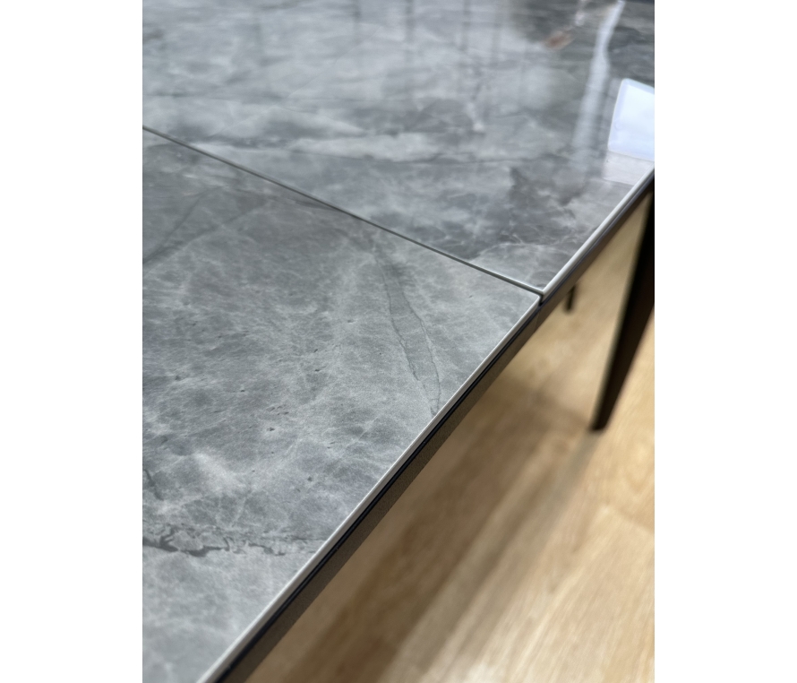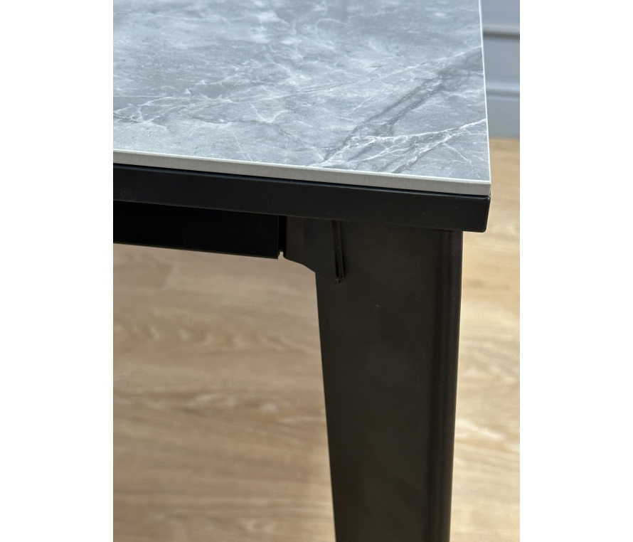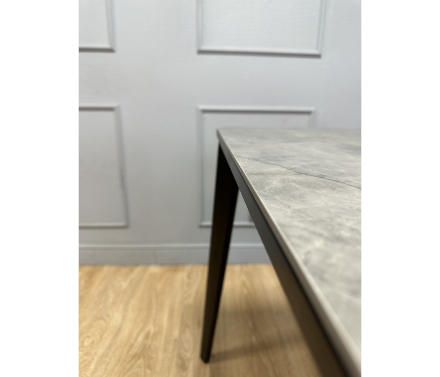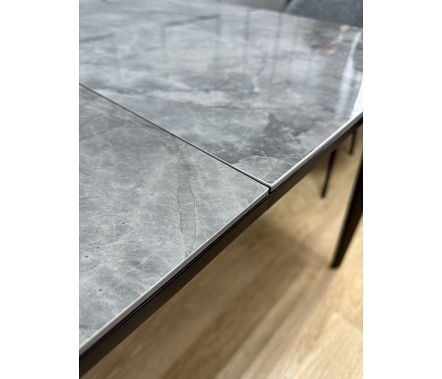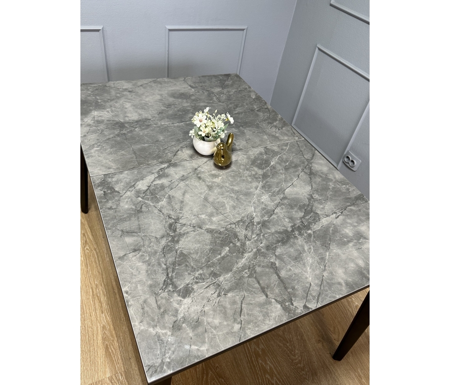 Стол с керамической столешницей и красивыми, функциональными опорами. Керамических столов такого размера очень мало, а размер 120*80см оптимален для кухни до 13м. Система раскладки увеличивает стол ещё на 45 см благодаря синхронному механизму раздвижения и прогрессивного механизму вставки "дельфин". Вставка с керамикой очень тяжёлая и требует специального механизма, предназначенного для керамики. Стол сможет разложить даже ребенок. KR1200 столы с керамической столешницей как правило выпускаются шириной 140-160см и более. Стол идеален для того, чтобы не занимать половину кухни. А при желании он разложится до 165см благодаря абсолютно новому механизму "дельфин" Столешница премиум-класса Керамика - наилучший и самый дорогой материал для обеденного стола. Она не портится от влаги, выдерживает температуру до 1000°С. Плотность керамики выше плотности металла и на ней не останутся следы от столовых приборов. Кроме того это 100% натуральный материал в отличие от разного вида пластиков Высокая надежность материалов В столе используются дизайнерские опоры, которые Вы не встретите у других столов. Тонкие, очень прочные, они дают достаточную ширину для того, чтобы поставить 2 больших стула по широкой стороне стола. Обеспечивают столу идеальную устойчивость.