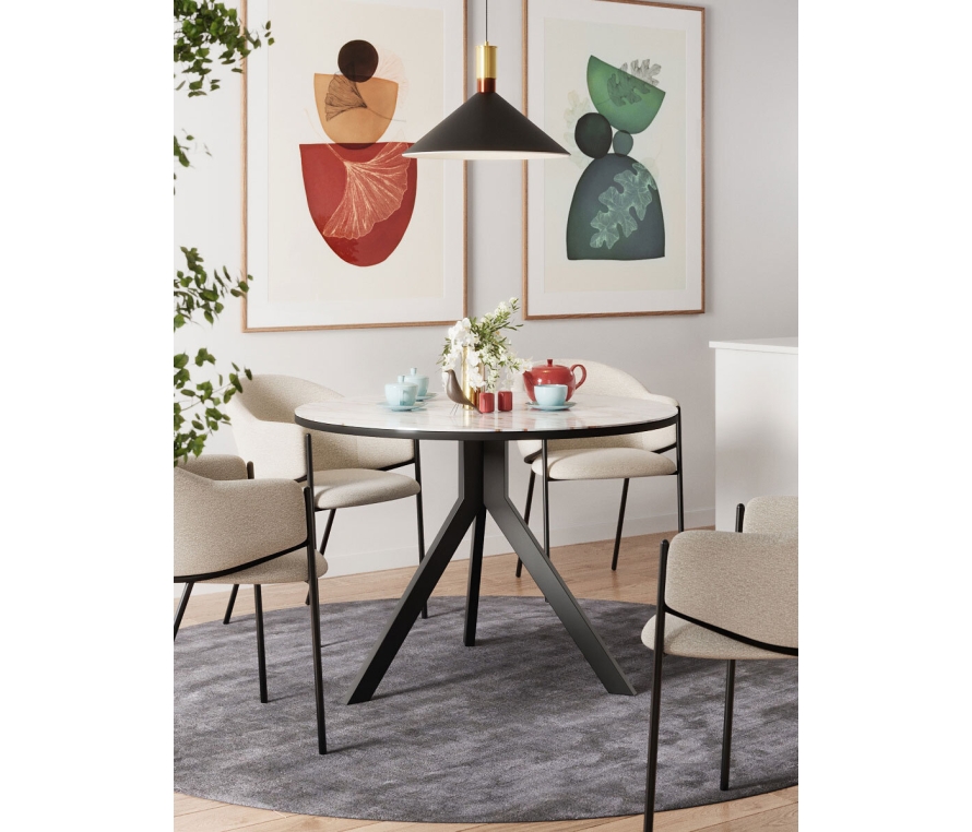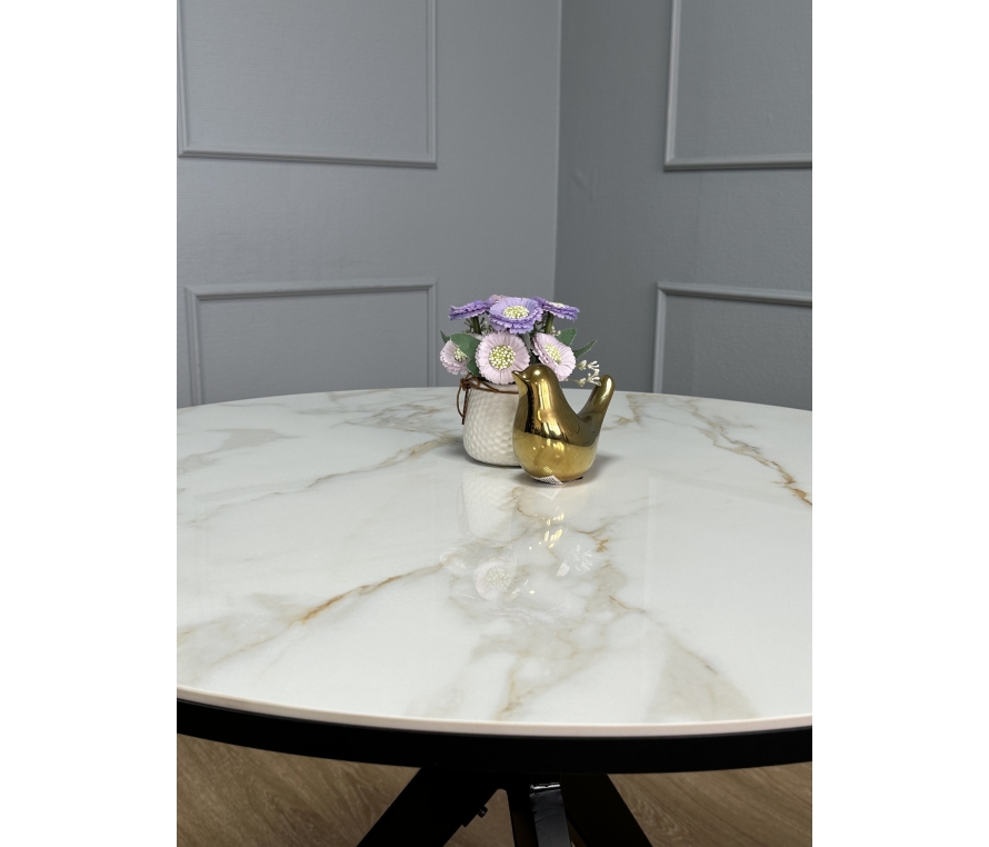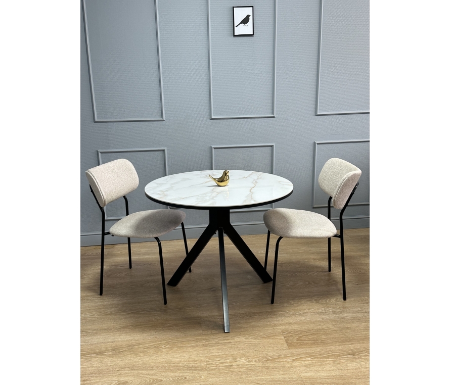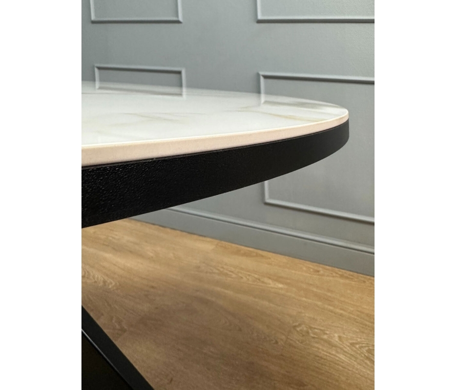 Оригинальный дизайнерский стол с глянцевой керамикой по лучшей цене на рынке. Как правило, за столом даже большой семьи собирается одновременно не более 2-3 человек. Днём мама кормит ребёнка, муж с женой ужинают вечером, дети обедают после школы. А значит, для активной городской семьи нет смысла занимать половину кухни большим столом. Размер стола позволяет использовать его как основной или в дополнение к островку для завтрака. RR900 компактный стол с цельной керамической столешницей, идеален для 3-х человек. Стол дизайнерского уровня, не подразумевает вставок и раскладного механизма Столешница премиум-класса Глянцевая керамика - очень эффектный материал, который сохряняет все свойства обычной керамики. Устойчивость к высокой температуре до 1000°С, твердость выше, чем твердость металла (а это значит на ней не останутся следы от металлических приборов), не впитывает загрязнения и влагу. Высокая надежность материалов Три оригинальные опоры - идеальное решение для такого стола т.к. оставляют максимальное место для ног, выглядят легко и гармонично.