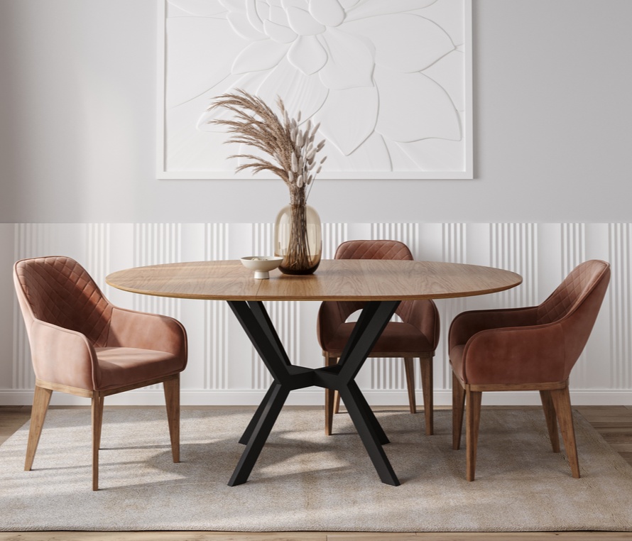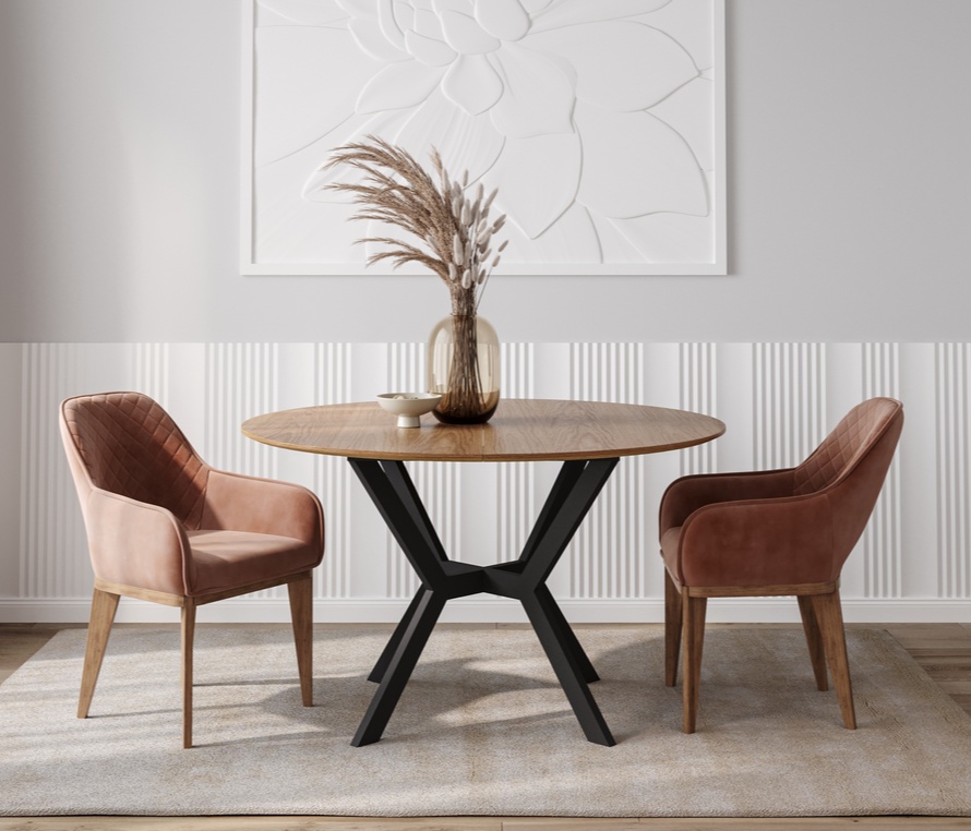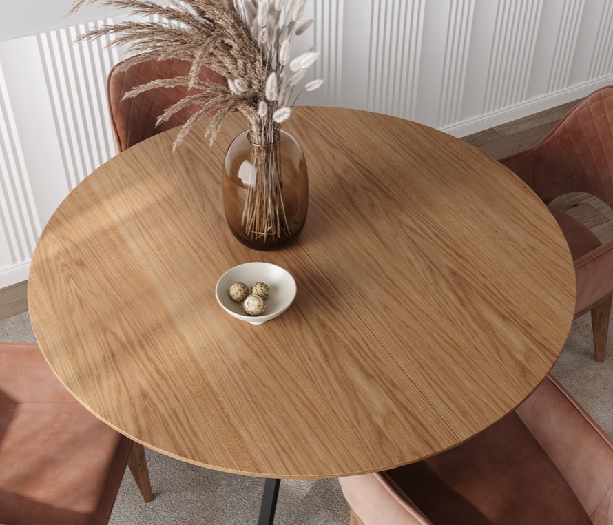 Столешница из шпона американского ореха или дуба ценится за естественную глубину и текстуру. Орех придаёт насыщенность, а дуб — мягкость и природную лёгкость.