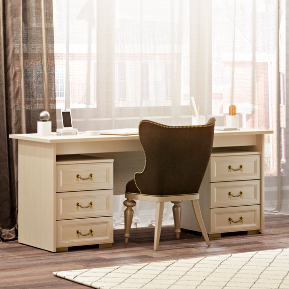 Недорогой компактный письменный стол прекрасно подойдет для домашнего кабинета. Дополнительно к столу вы можете приобрести тумбы с тремя выдвижными ящиками. Габаритный размер указан по максимально выступающим частям изделия. Цена стола указана без стоимости тумб.