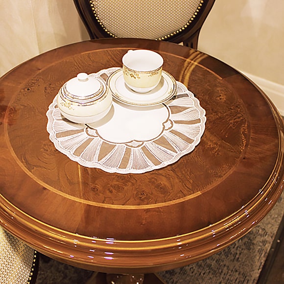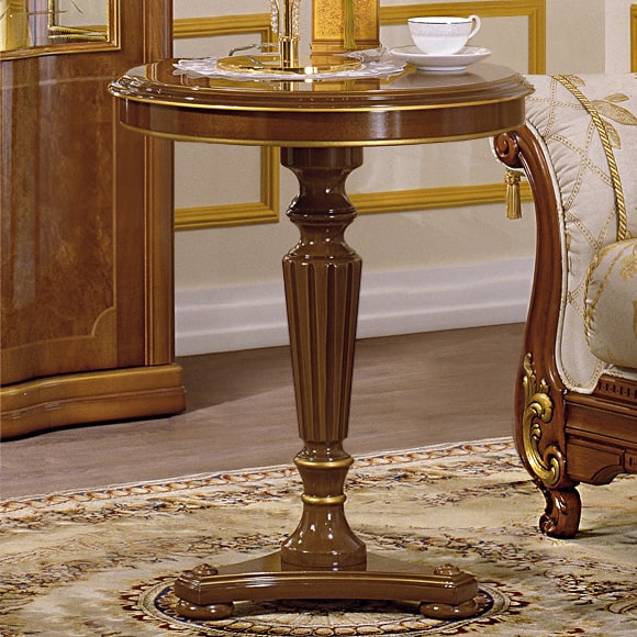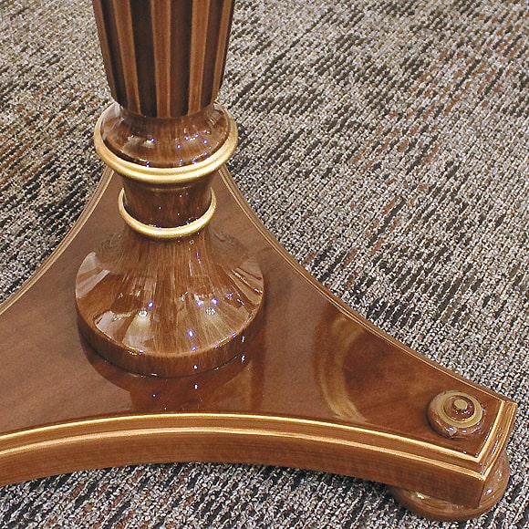 Небольшой кофейный столик станет гармоничным дополнением интерьера вашей гостиной. За ним приятно будет отдохнуть с чашечкой кофе или чая. Столик изготовлен с применением массива и шпона натурального дерева. В отделке столешницы используется художественный набор шпона - интарсия. Резная ножка стола декорирована сусальным золотом. Габаритный размер указан по максимально выступающим частям изделия.