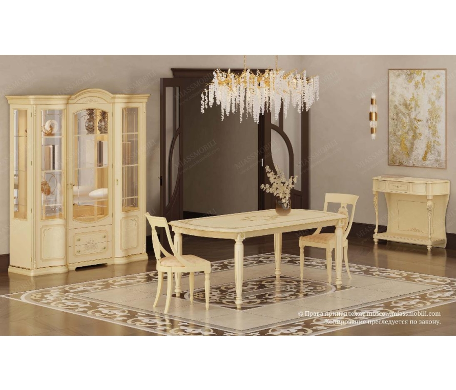 Стол раздвижной обеденный. Столешница декорирована художественной ручной росписью. Резные ножки выполнены из массива. Стол представлен в двух размерах. Габаритный размер указан по максимально выступающим частям изделия.