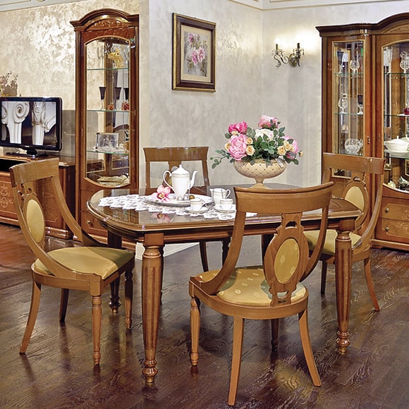 Для небольших по площади помещений подойдет малый обеденный стол. Он займет не слишком много места, но при необходимости может раскладываться на больший размер. Стол выполнен с применением массива и шпона бука. В отделке столешницы используется художественный набор шпона - интарсия. Глянцевый лак подчеркивает изумительной красоты рисунок на столешнице, созданный самой природой. Габаритный размер указан по максимально выступающим частям изделия.