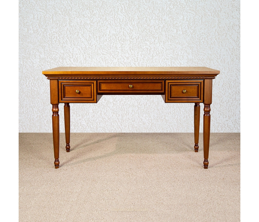 Стол письменный из набора мебели для Лоренцо. Стол выполнен из массива бука, крышка облицована шпоном красного дерева. Резные элементы придают изделию изящество и легкость. Габаритный размер указан по максимально выступающим частям изделия.