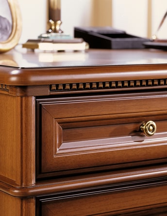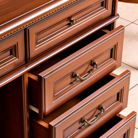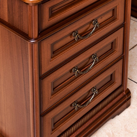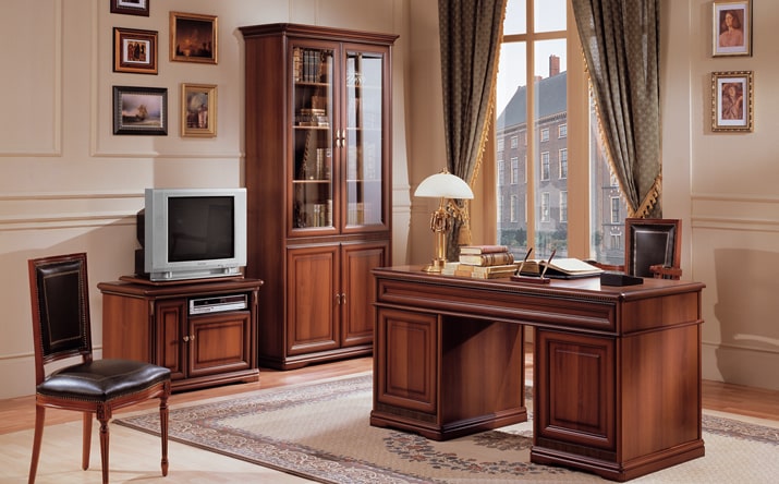Письменный стол - основа любого кабинета и главная его составляющая. Вместительный двухтумбовый письменный стол оборудован множеством выдвижных ящичков, которые позволят вам держать в полном порядке всю необходимую документацию. Легкое лаковое покрытие выгодно подчеркивает насыщенный ореховый цвет мебели. Качественная и красивая фурнитура цвета античной бронзы гармонично дополняет внешний вид мебели. Габаритный размер указан по максимально выступающим частям изделия.