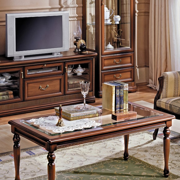 Журнальный стол на изящных резных ножках станет прекрасным дополнением к набору мебели для гостиной. Стеклянная столешница и декор в виде позолоченных накладных элементов по периметру столешницы придают изделию легкость, подчеркивая классический стиль мебели. Габаритный размер указан по максимально выступающим частям изделия.