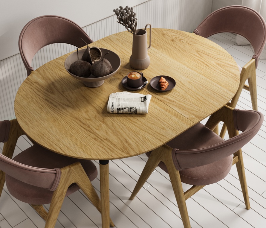 Коллекция столов Актриса создана для любителей утонченности и уютных акцентов. Округлые изящные ножки и утонченная скошенная кромка столешницы перекликаются с ретро-стилем в современном прочтении. Стол не утяжеляет пространство, наполняет его теплом и лёгкостью, а премиальные материалы делают его долговечным центром обеденной зоны. Он естественно смотрится в семейных кухнях или просторных гостиных, усиливая индивидуальность интерьера.