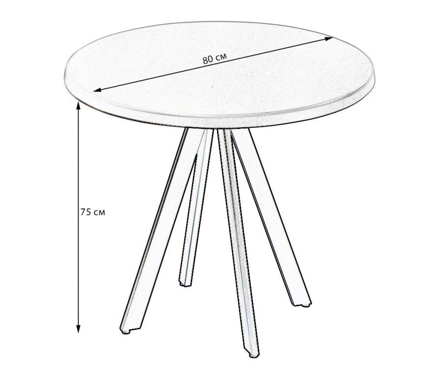 Диаметр, см: 80 Материал столешницы: Topalit (прессованная древесина с покрытием) Материал каркаса: Металл Цвет каркаса: Черный муар Материал ножек: Металл Гарантия: 12 месяцев Страна производителя: Россия Сборка: Требуется