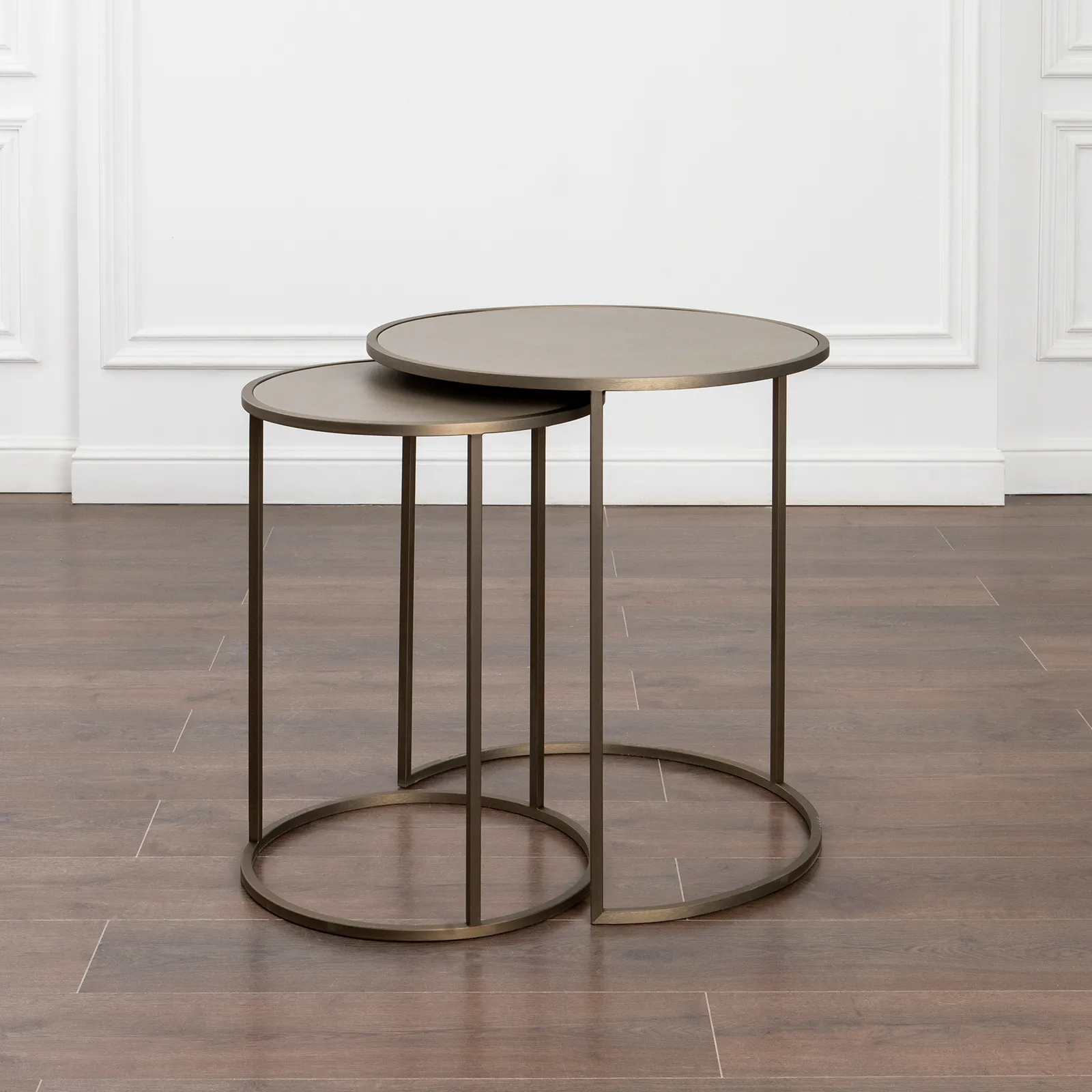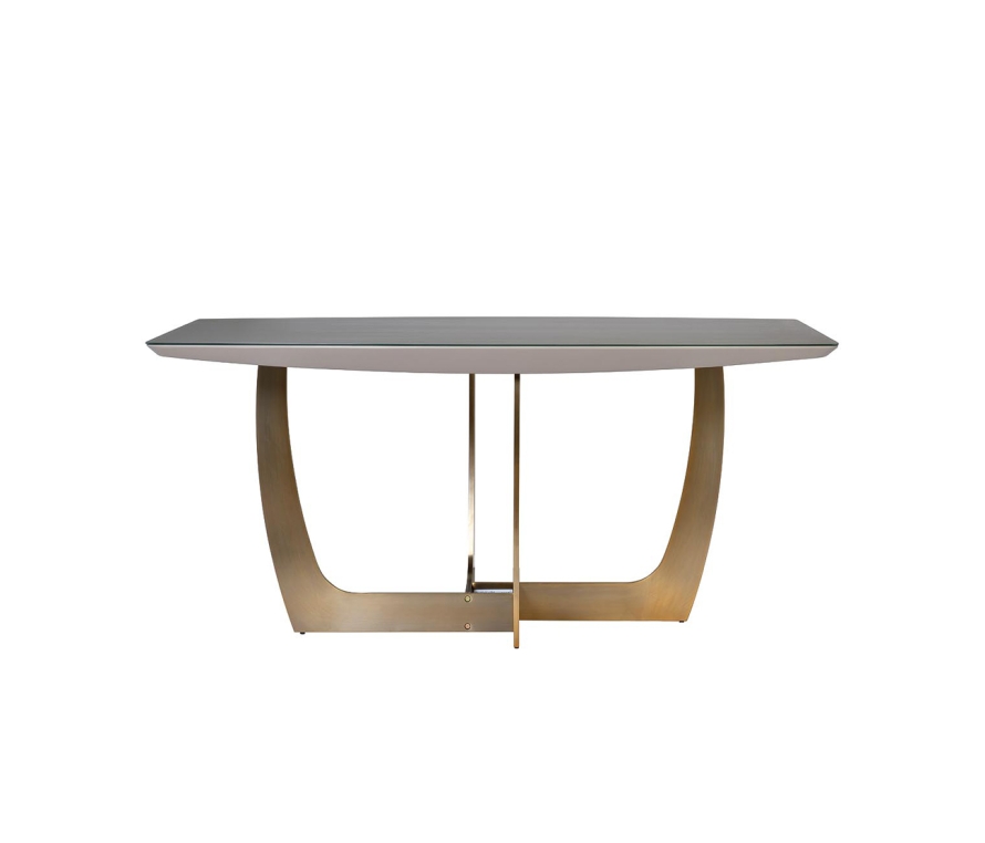 Журнальный столик 2 в 1 на металлическом основании латунно-никелевом цвете и столешницей из износостойкой экокожи.