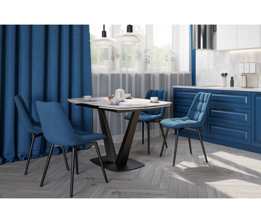 Эффектный стул B105-m NAVY VL68 BK на четырех ножках выполнен из износоустойчивого металла. Удобное мягкое сиденье с велюровой обивкой синего цвета привлекают внимание к дизай