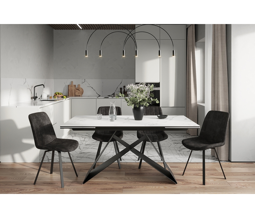 Премиальная экозамша цвета базальт, из которого изготовлена обивка стула B224-M SD BASALT BK, эффектно сочетается с черными ножками из нержавеющей стали. Металлический каркас