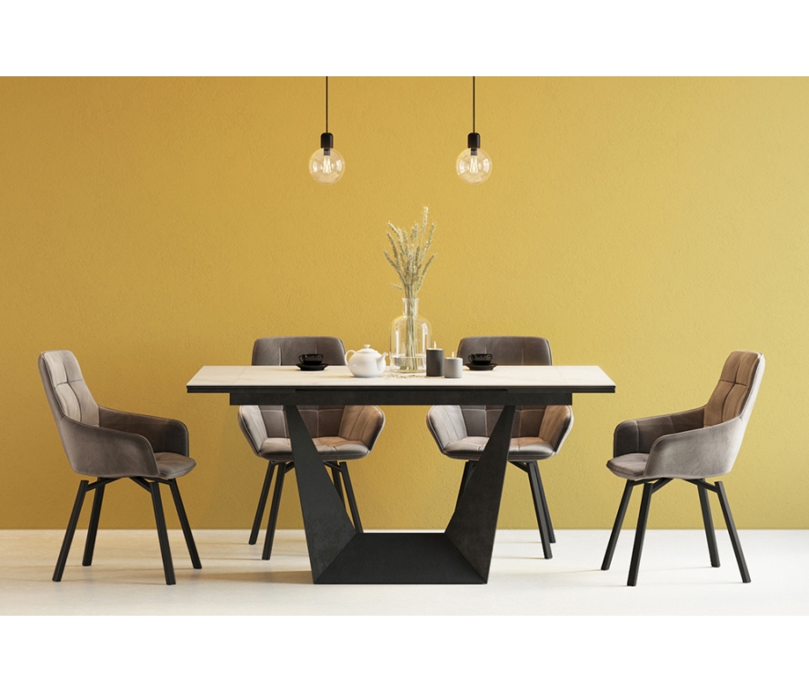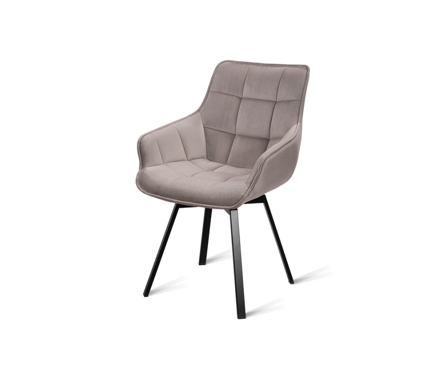 Дизайнерский стул с металлическим каркасом с поворотным сиденьем. Изготовлен в актуальной манере, обивка – люксовый велюр цвета «латте». Ножки из металлического сплава в виде