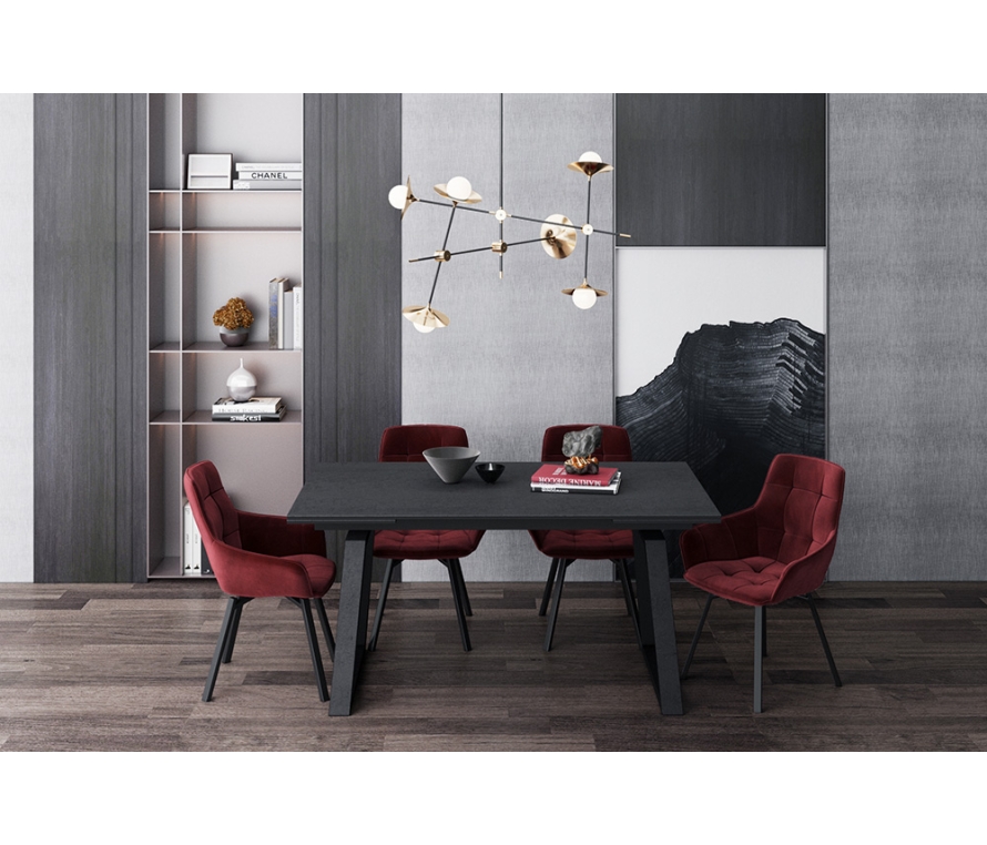 Дизайнерский стул с металлическим каркасом с поворотным сиденьем. Изготовлен в актуальной манере, обивка – люксовый велюр вишневого цвета. Ножки из металлического сплава в вид