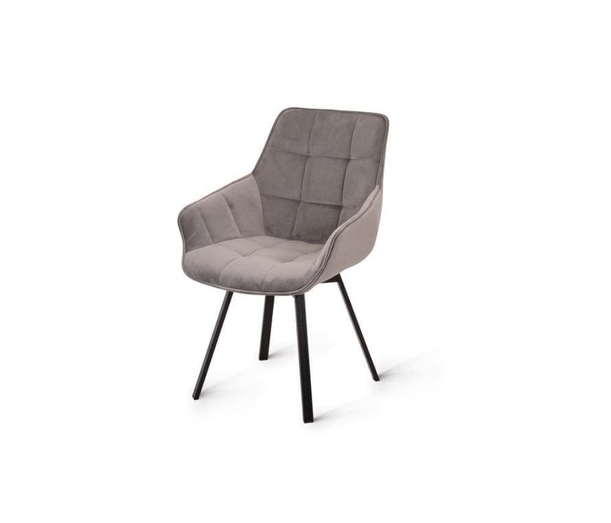 Дизайнерский стул с металлическим каркасом с поворотным сиденьем. Изготовлен в актуальной манере, обивка – люксовый велюр светло-серого цвета. Ножки из металлического сплава в