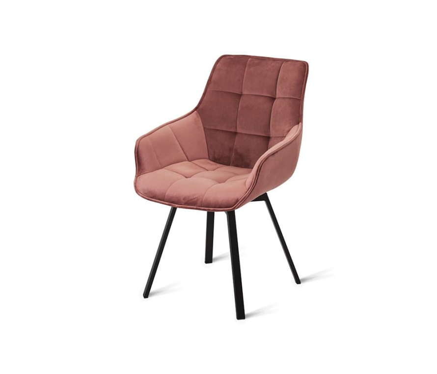Дизайнерский стул с металлическим каркасом с поворотным сиденьем. Изготовлен в актуальной манере, обивка – люксовый велюр нежно-розового цвета. Ножки из металлического сплава