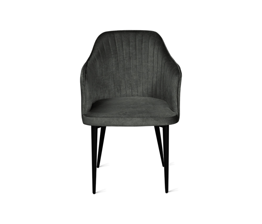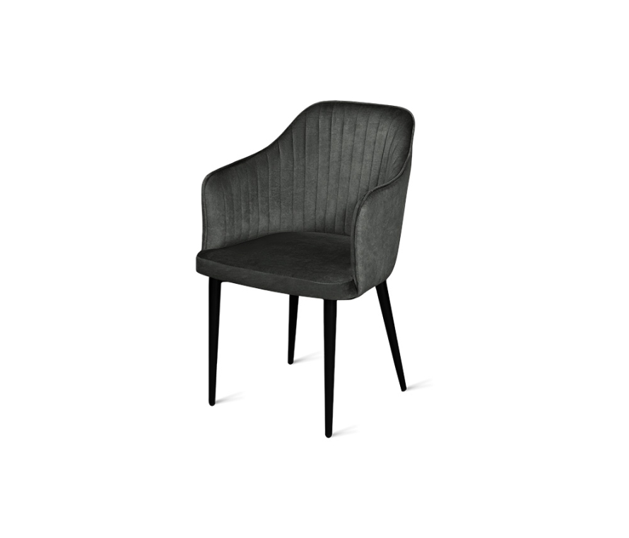Стул B822 ART GRAFITE выполнен в строгом цвете графит. Модель отделана фактурным велюром с легким блеском. Изогнутая спинка с цельными скругленными подлокотниками оформлена ве
