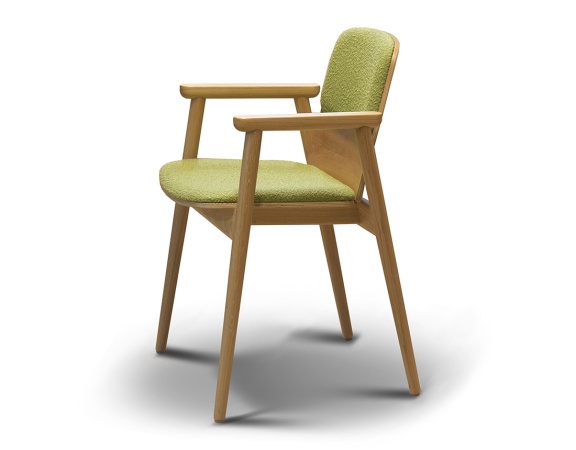 Оригинальная современная модель. Модное сочетание открытого дерева и ткани позволит этому полукреслу вписаться и украсить любой проект. Элегантная горизонтальная прострочка на подлокотниках является дополнительной опцией в этой модели, возможно исполнение когда подлокотники прозрачные и не закрыты тканью. Выбор материалов практически безграничен.