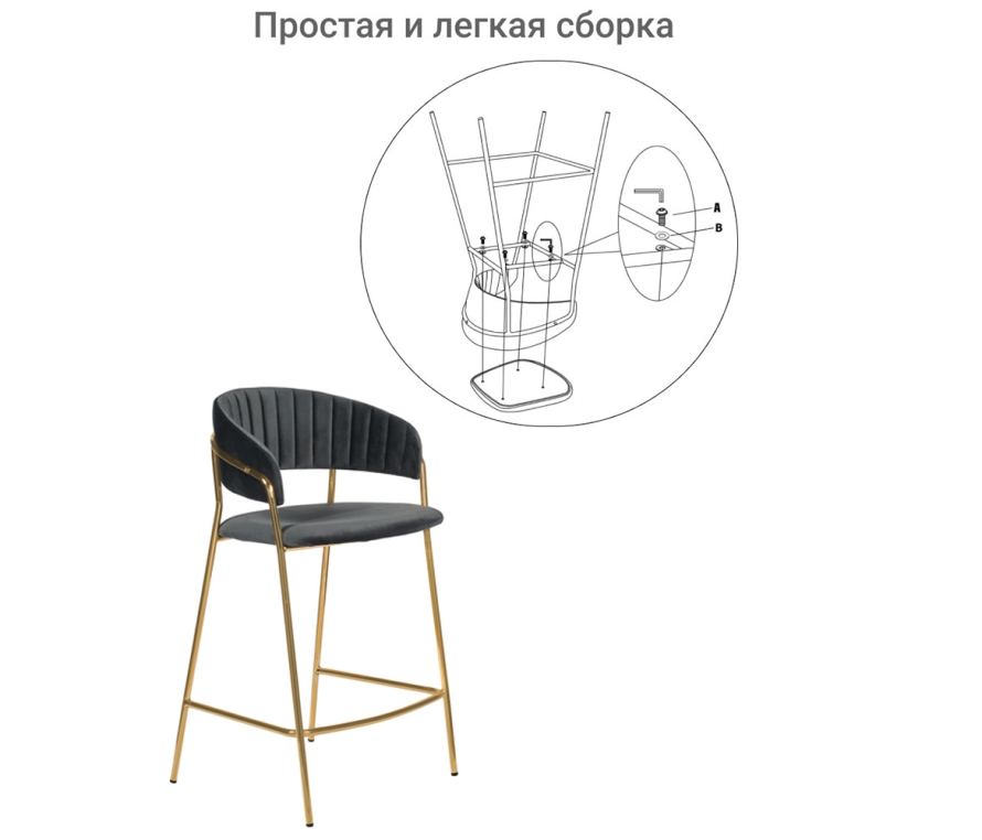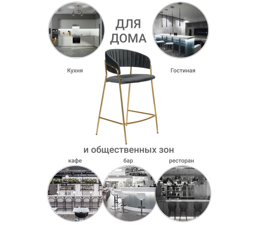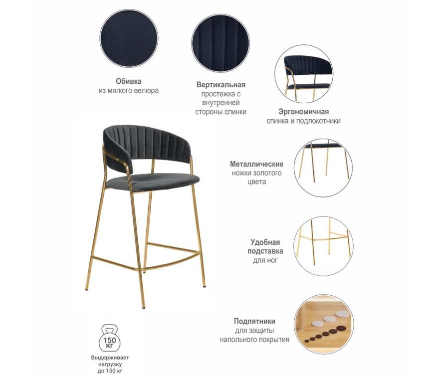 Комплект из 2-х стульев полубарных Turin чёрный с золотыми ножками