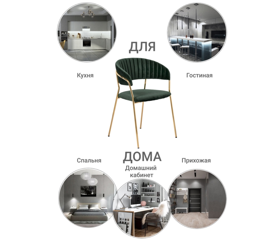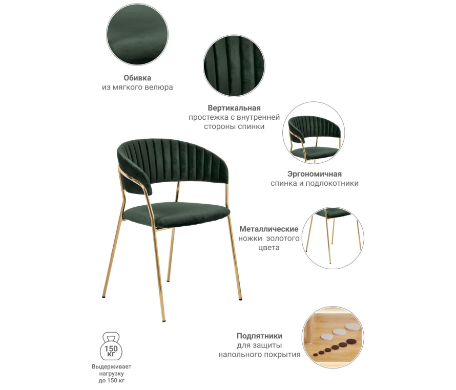 Комплект из 4-х стульев Turin зеленый с золотыми ножками