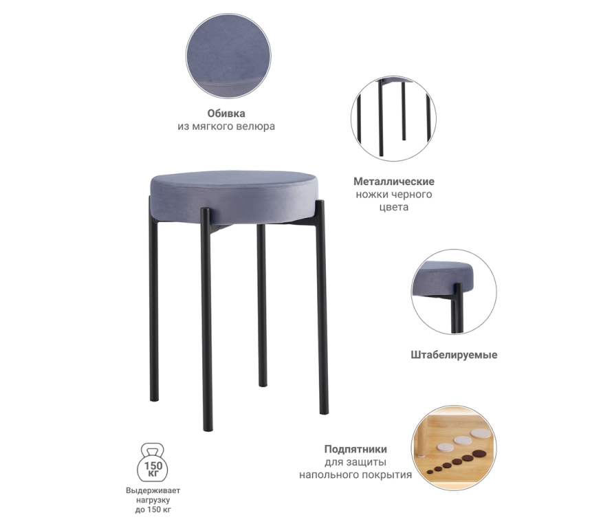 Ножки из метала окрашены в черный матовый цвет.
