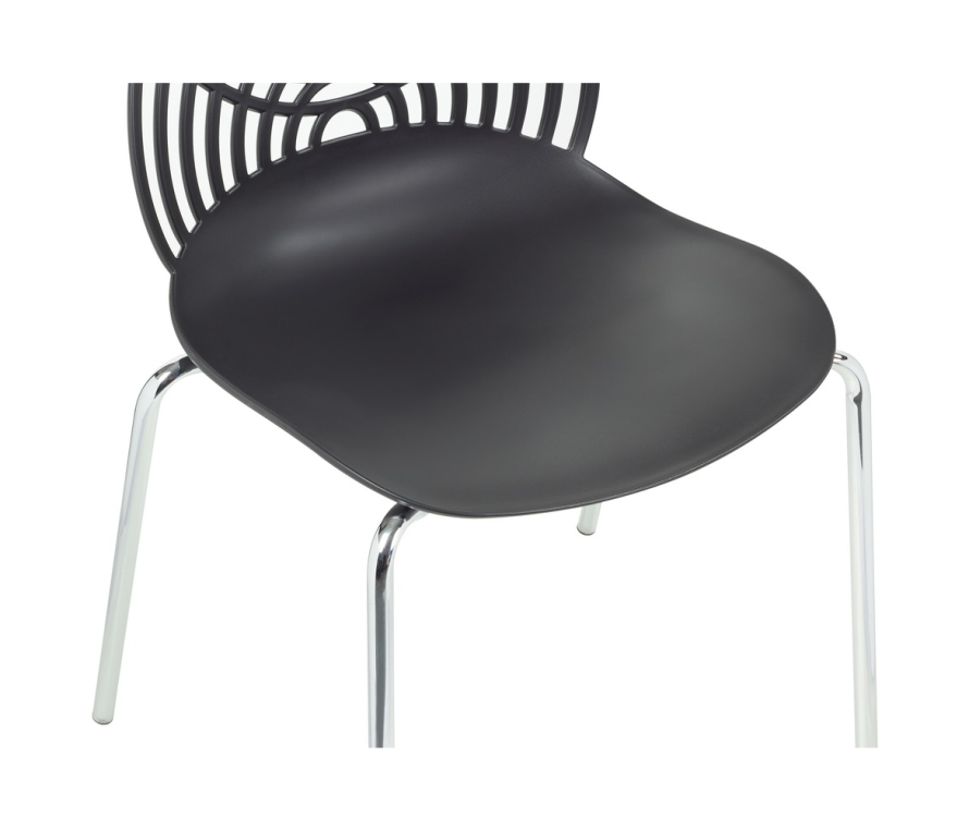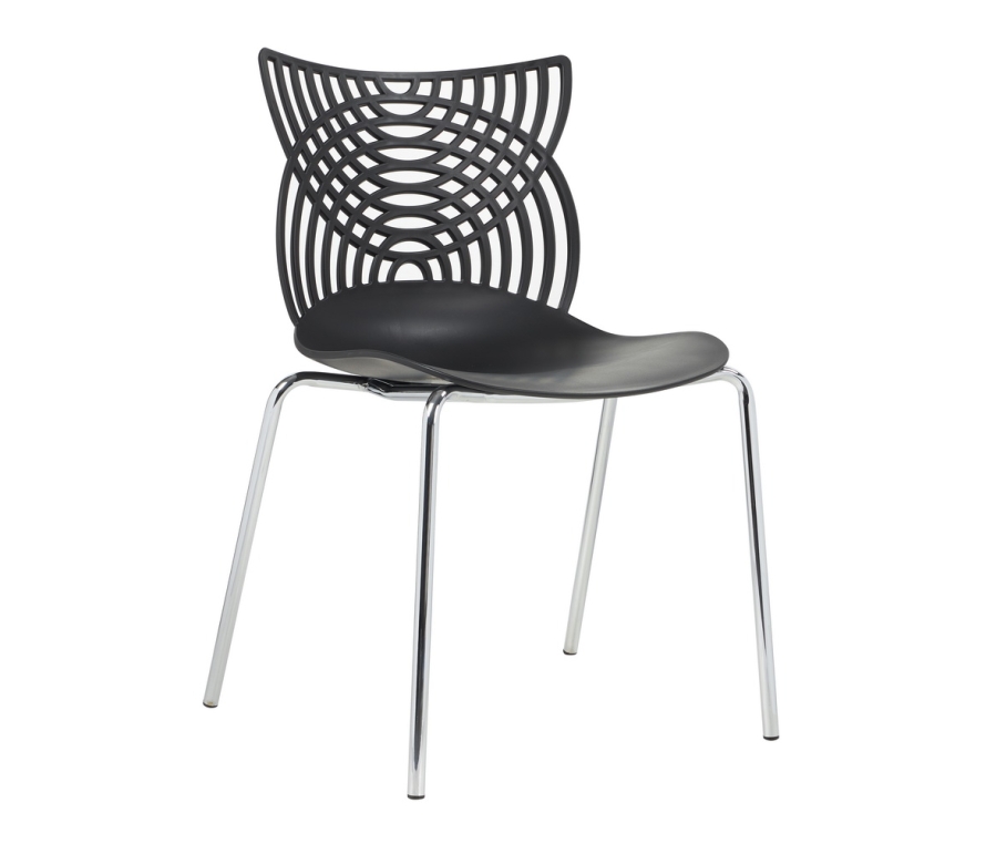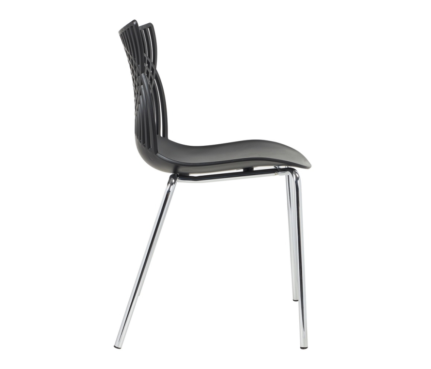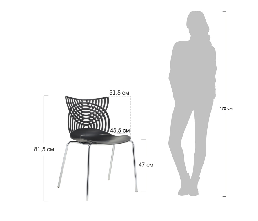 Стул Cat – это ультрасовременная модель мебели для смелых дизайнерских решений. Даже самый простой интерьер превратится в интерьер с обложки модного журнала. Необычная форма спинки в виде кошачьих ушек лежит в основе названия стула. Сидение и спинка стула изготовлены из прочного полипропилена стильного черного цвета, благодаря чему за стулом удобно ухаживать, используя влажную уборку, поэтому изделие отлично подойдет не только для жилого интерьера, но и для оснащения кафе и ресторанов. Хромированные утонченные ножки стула выглядят практически невесомыми, спинка стула имеет замысловатое переплетение, что позволяет сделать интерьер лёгким и не перегруженным деталями.