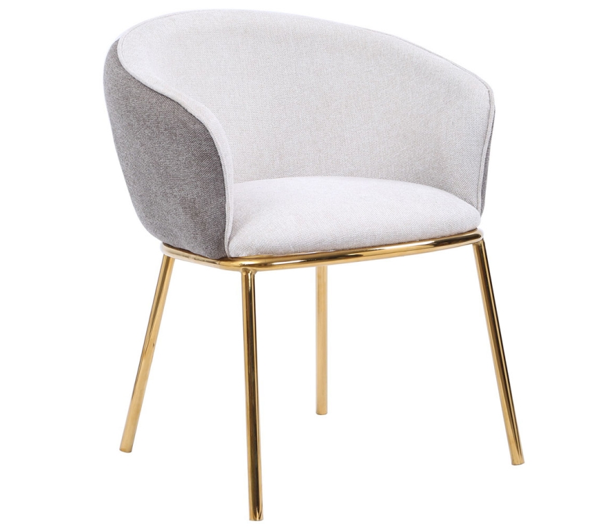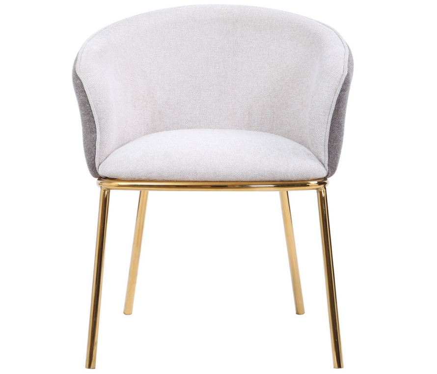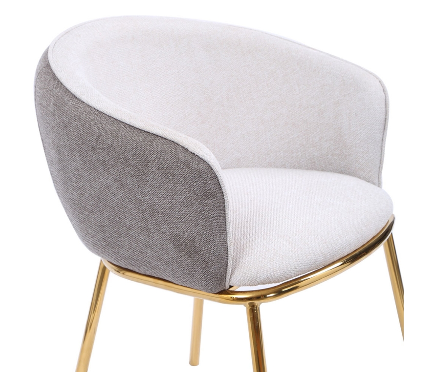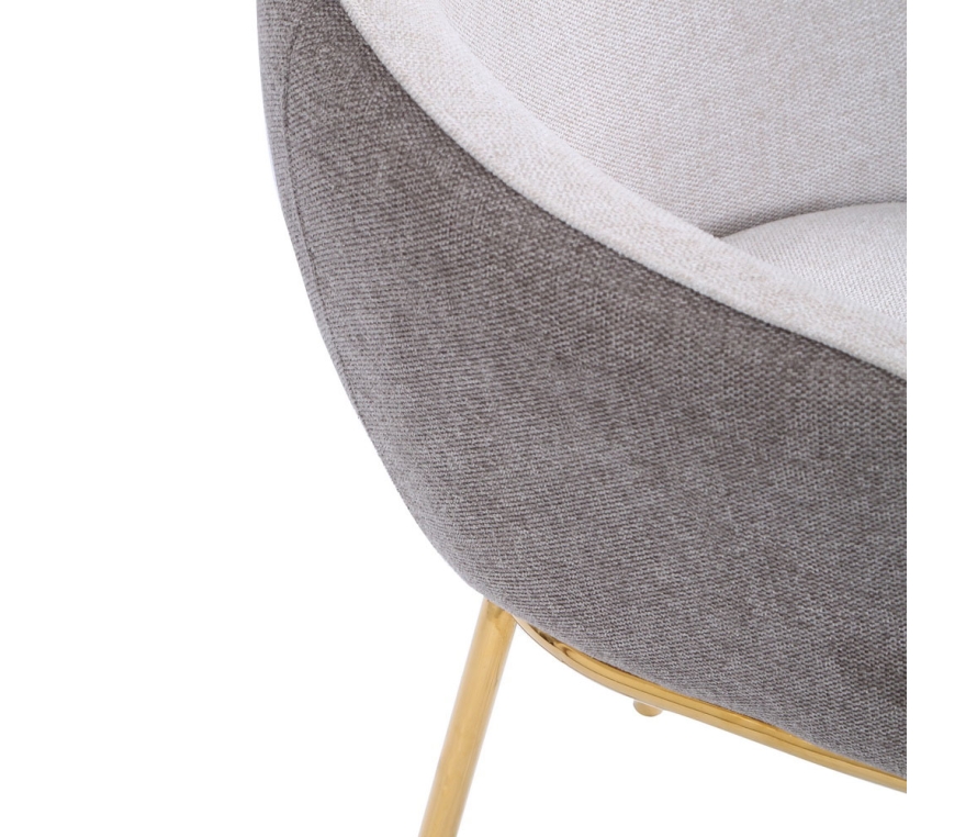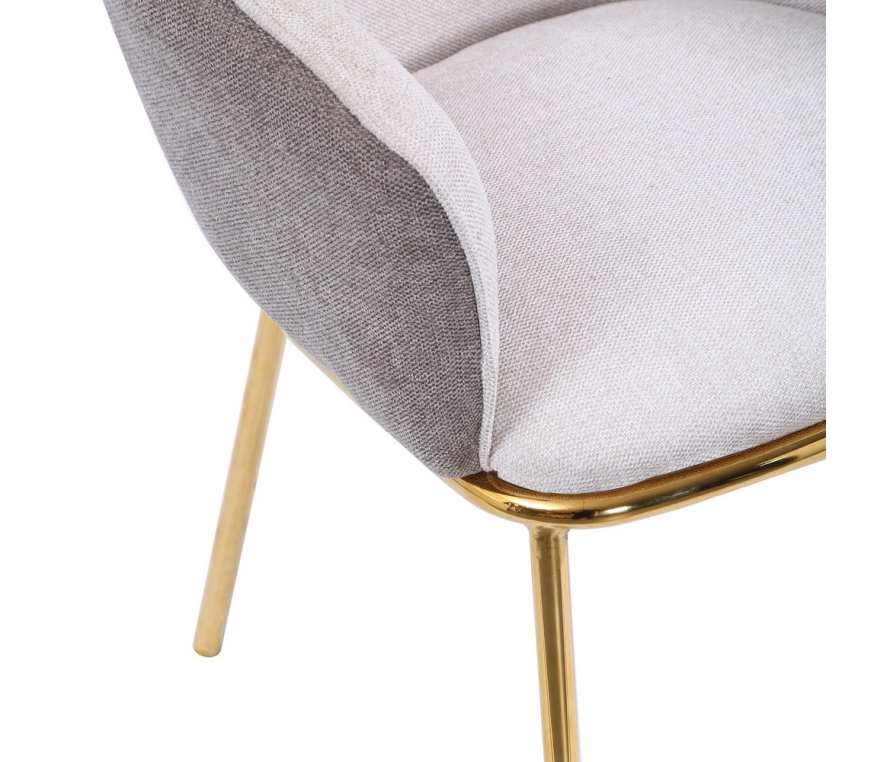 Ищете, какие купить стулья? Стул Duke идеально подчеркнет современный интерьер городской квартиры, загородного дома и даже кафе. Отличительная особенность серии в использовании рогожки двух цветов для обивки, внутри нежный кремовый оттенок, снаружи темный. Сочетание бежевого с латте выглядит нежно и элегантно, поэтому может как подчеркнуть интерьер, так и стать в нем цветовым акцентом. Ткань мягкая и приятная, но одновременно устойчива к износу. Стул удобный, как кресло и вместе с тем стильный. Сочетание бежевого и золотистого цветов — это классика и постоянный тренд стульев для кухни или гостиной, который никогда не выйдет из моды. А металлические ножки станут ярким акцентом и подчеркнут дизайн всего помещения.