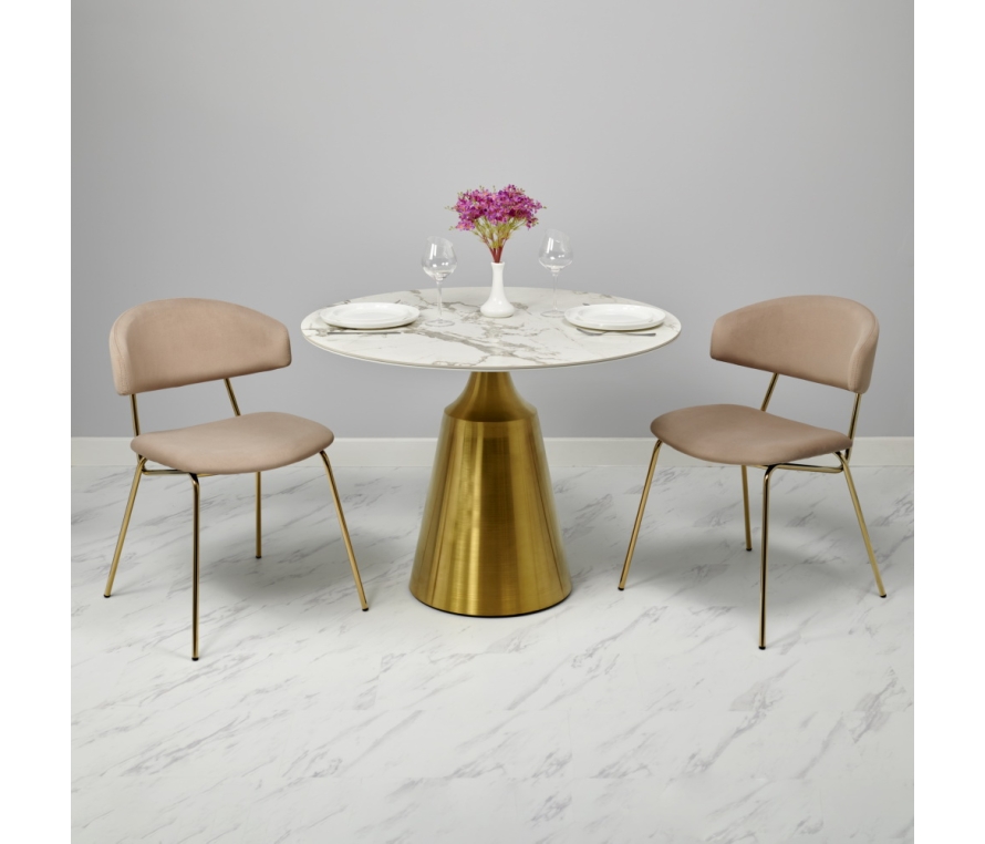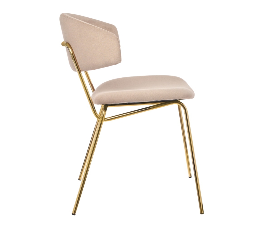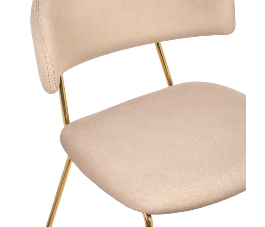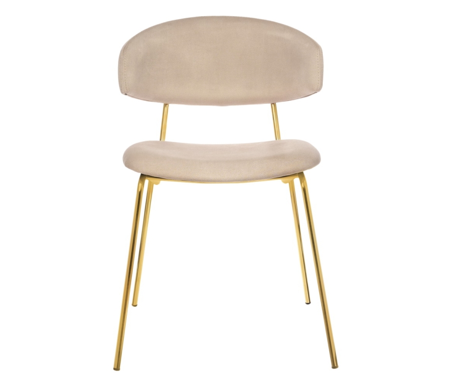 Стул Elle — воплощение необычного и стильного дизайна, который не оставит равнодушными гостей вашего дома. Его главная особенность — оригинальный каркас, состоящий из двух металлических стержней, к которым крепятся мягкая спинка и сиденье, обтянутые бархатистым велюром Romano. Этот материал обладает высокой плотностью, не мнётся и подходит для всех видов мебели. Его шелковистая поверхность приятна на ощупь, а дополнительный принт придаёт ткани уникальность и глубину. Велюр заслуженно считается одним из лидеров среди мебельных тканей благодаря своему эстетичному виду, простоте ухода и долговечности. Стул на таких ножках будет комфортным и уютным. Ножки стула изготовлены из полированной нержавеющей стали с покрытием из нитрида титана, что создаёт эффект натурального золота и придаёт изделию роскошный вид. Дизайн этой модели идеально впишется в современный интерьер, оформленный в стиле модерн или минимализм. Благодаря своей лаконичности и удобству посадки стул станет отличным дополнением для гостиной, столовой или спальни.
