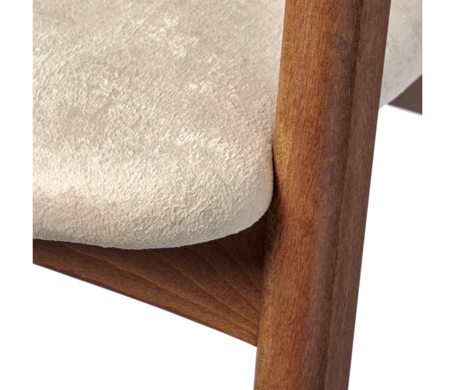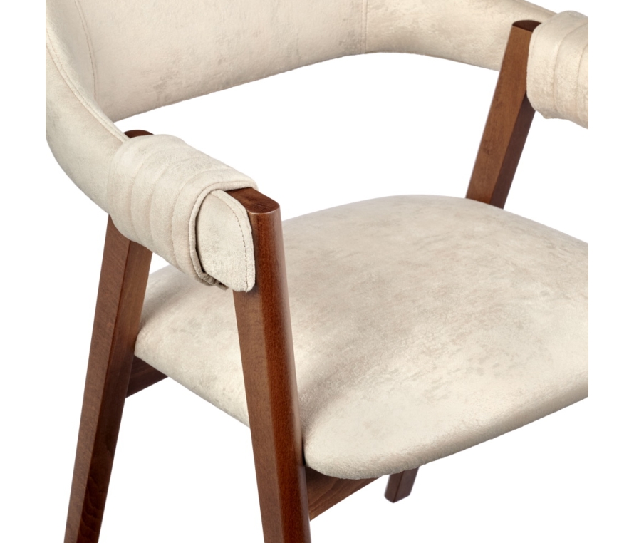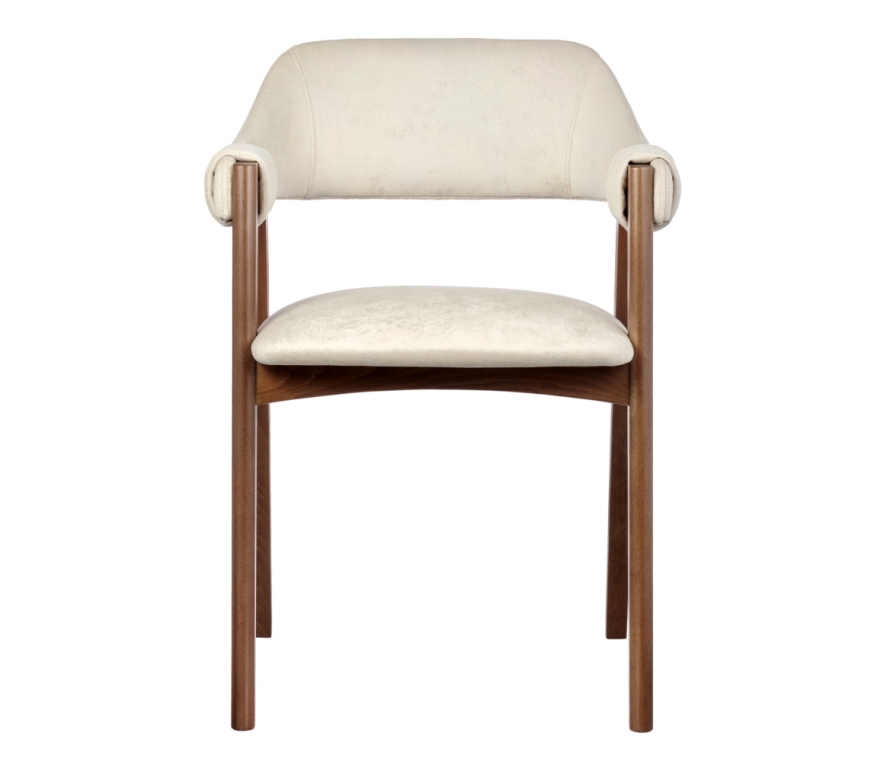 Стул KELLI - это элегантное изделие с изогнутой спинкой и массивными ножками из бука. Подлокотники обтянуты велюром, добавляя роскошь и комфорт. Изысканный дизайн, сочетающий в себе изящество форм и высококачественные материалы, делает этот стул не только удобным, но и стильным акцентом в интерьере. Высота подлокотников - 680мм Ширина посадочная между подлокотниками - 450мм Поставляется в собранном виде.