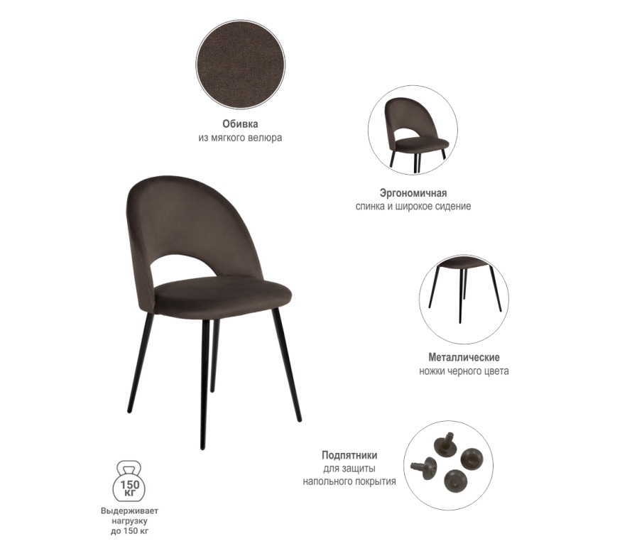 Лаконичный дизайн стула Leo с полукруглой спинкой в велюровой обивке понравится любителям комфорта и уюта. Благодаря сдержанным расцветкам и оригинальному силуэту стулья Leo подходят не только для домашних интерьеров, но и для оформления кафе, холлов отелей или офисных центров.