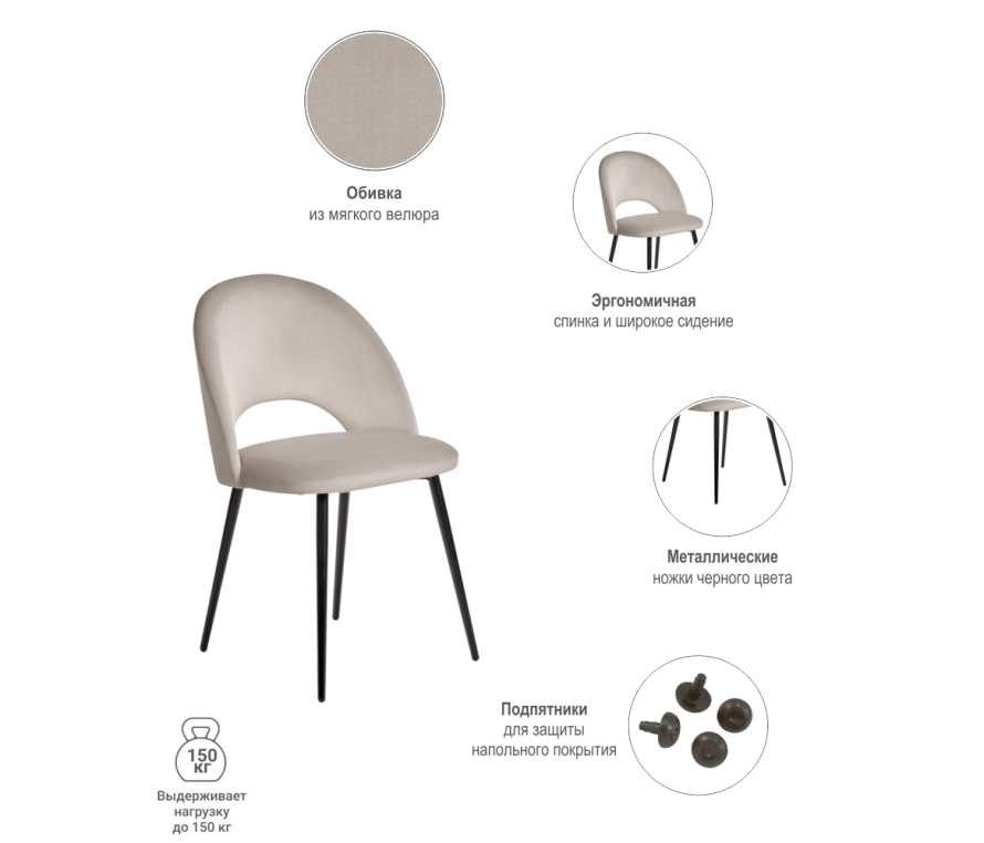 Лаконичный дизайн стула Leo с полукруглой спинкой в велюровой обивке понравится любителям комфорта и уюта. Благодаря сдержанным расцветкам и оригинальному силуэту стулья Leo подходят не только для домашних интерьеров, но и для оформления кафе, холлов отелей или офисных центров.