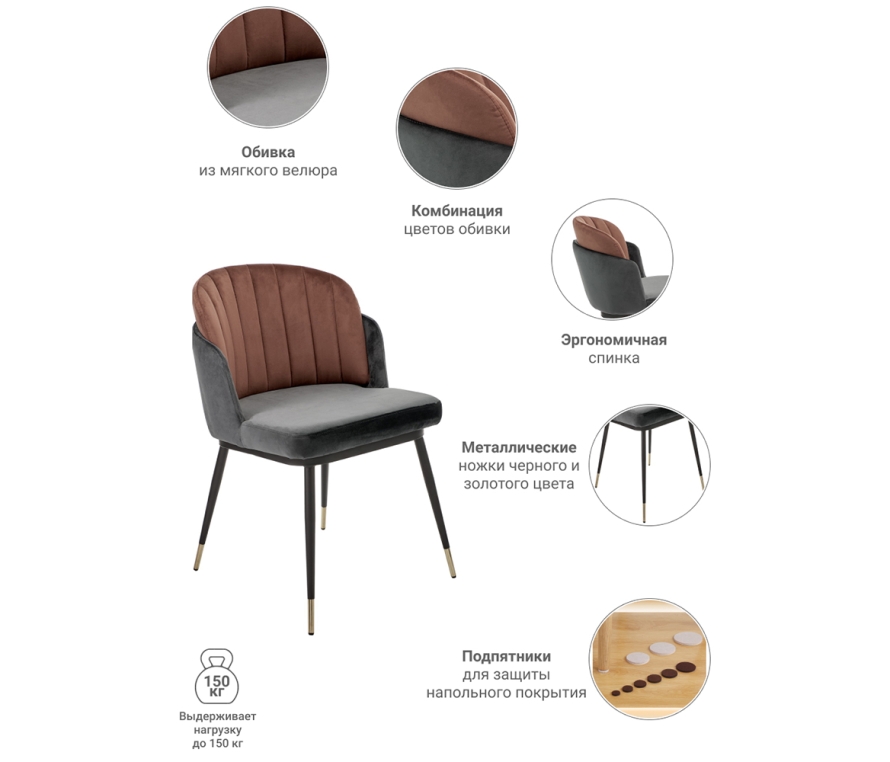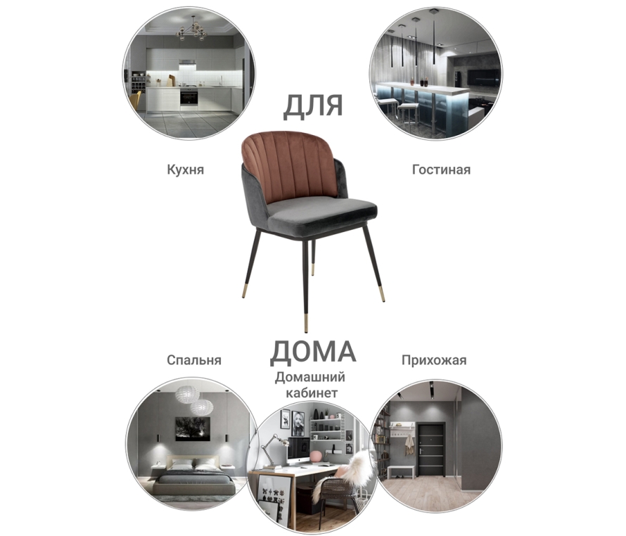 Мягкие стулья Peki станут истинным украшением интерьера в любом стиле. Они одинаково хорошо подойдут как для гостиной, так и для спальни и даже для кафе или ресторана. Стул с мягкой спинкой располагает к комфорту и уюту. Обивка — мягкий нежный велюр, к которому приятно прикасаться. При этом стул крепкий и надежный благодаря металлическому каркасу. Отличительная особенность серии — золотые кончики ножек, которые выполнены из металла, окрашенного в черный цвет. Сочетание серого с терракотовым станет ярким акцентом в интерьере или подчеркнет классический дизайн помещения.