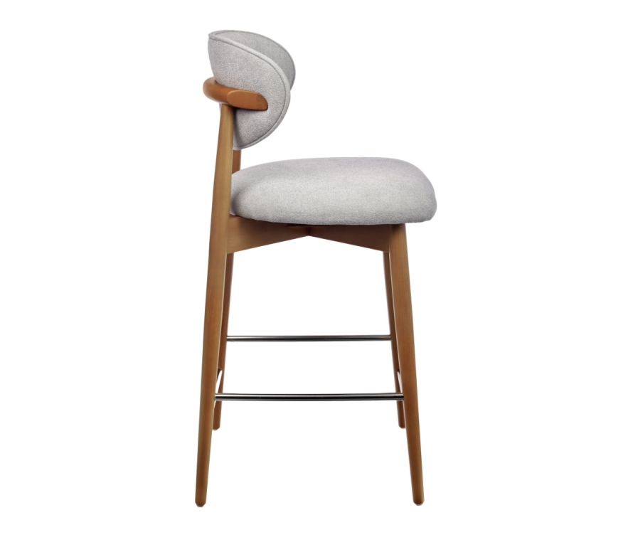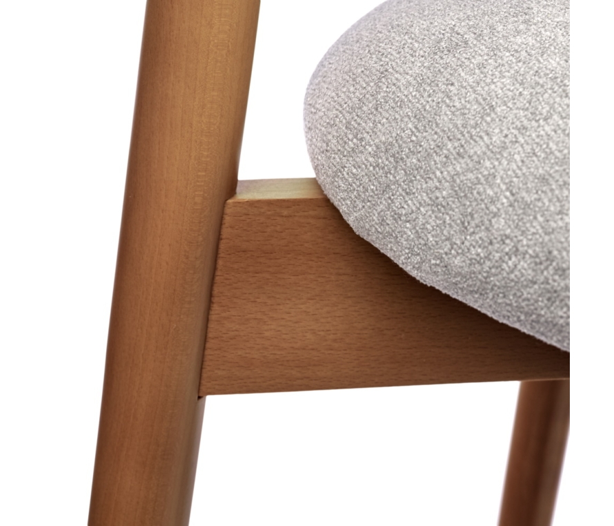Полубарный стул Lucas 3 сочетает в себе стильный дизайн и высокое качество. Лаконичные по уникальному силуэту стулья могут стать изюминкой любого интерьера. Плавные линии и мягкие контуры стула легко вписываются в разные стили, особенно гармонично они будут смотреться в скандинавском, джапанди, японском или стиле ваби-саби. Сиденье и спинка изготовлены из высококачественной уютной ткани букле серии Like, приятной на ощупь и устойчивой к износу. Рельеф поверхности ткани придаёт пространству природную текстуру, смягчает углы мебельных форм и подчёркивает силуэт мягкой мебели. Мягкая обивка из букле не только нежная на ощупь, но и прочная благодаря трикотажной основе. Она хорошо держит форму, легко драпируется и не мнётся. Тонкая текстура букле создаёт тёплую и уютную атмосферу в любом помещении. Оригинальный каркас стула выполнен из массива натурального дерева бук в цвете орех, что добавляет стулу элегантности. Стулья из бука отличаются прочностью, надежностью и долговечностью. Ножки стула имеют оптимальное расположение, обеспечивая устойчивость и удобство использования. Полубарный стул Lucas 3 имеет удобную высоту и выдерживает нагрузку до 120 кг, гарантируя надёжность и долговечность. Высота сиденья составляет 105 см, что делает его идеальным для полубарных столов или высоких столов дома или в кафе.