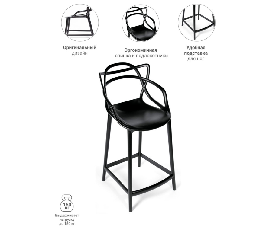 Полубарный стул Masters черный прекрасно дополняет коллекцию стульев Masters актуальным и востребованным функционалом. Коллекция Masters позволяет реализовать различные зоны и помещения в едином стилевом решении.