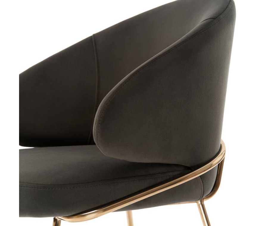 Полукресло Emil имеет широкую изогнутую спинку и мягкое сиденье, которые обеспечивают максимальный уровень комфорта. Ножки выполнены из полированной нержавеющей стали, они не подвержены коррозии и при правильном уходе сохранят свой первоначальный вид 50 лет. Все видимые сварочные швы на ножках тщательно отполированы. Напыление нитрид титана, обеспечивает ножкам натуральный цвет золота. Велюровая обивка обеспечивает невероятную мягкость и красивый глубокий цвет, износостойкость 100 000 циклов.