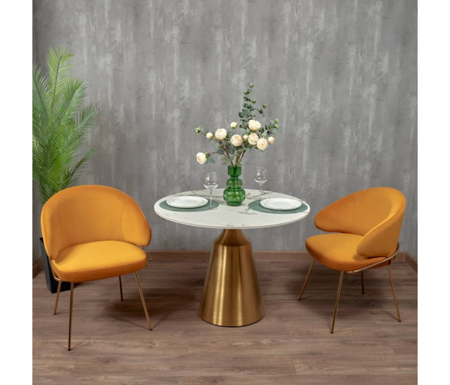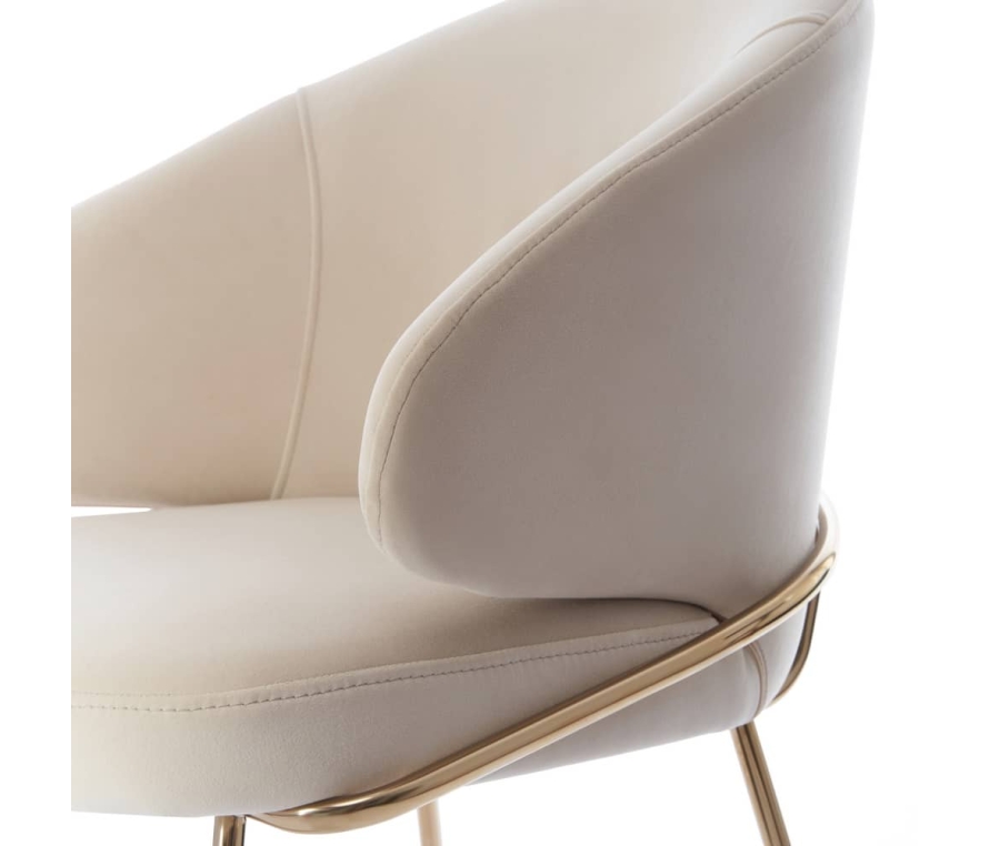 Полукресло Emil имеет широкую изогнутую спинку и мягкое сиденье, которые обеспечивают максимальный уровень комфорта. Ножки выполнены из полированной нержавеющей стали, они не подвержены коррозии и при правильном уходе сохранят свой первоначальный вид 50 лет. Все видимые сварочные швы на ножках тщательно отполированы. Напыление нитрид титана, обеспечивает ножкам натуральный цвет золота. Велюровая обивка обеспечивает невероятную мягкость и красивый глубокий цвет, износостойкость 100 000 циклов.