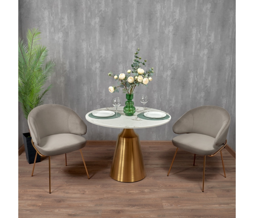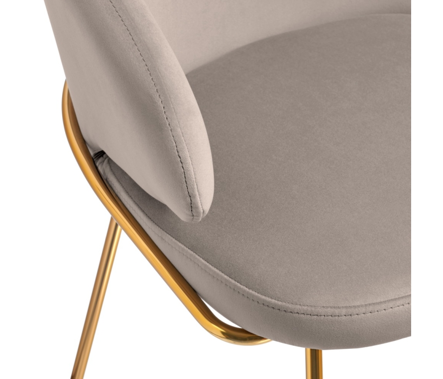Полукресло Emil имеет широкую изогнутую спинку и мягкое сиденье, которые обеспечивают максимальный уровень комфорта. Ножки выполнены из полированной нержавеющей стали, они не подвержены коррозии и при правильном уходе сохранят свой первоначальный вид 50 лет. Все видимые сварочные швы на ножках тщательно отполированы. Напыление нитрид титана, обеспечивает ножкам натуральный цвет золота. Велюровая обивка обеспечивает невероятную мягкость и красивый глубокий цвет, износостойкость 100 000 циклов.