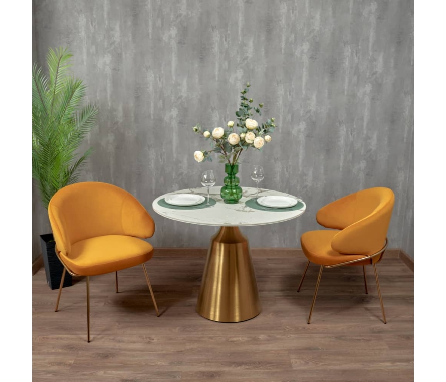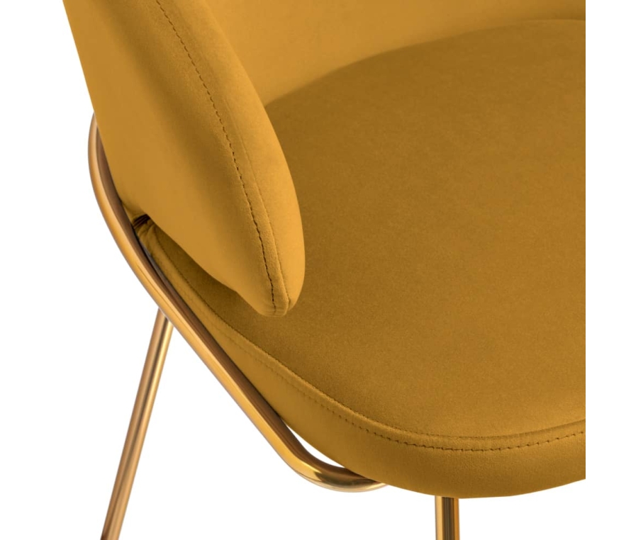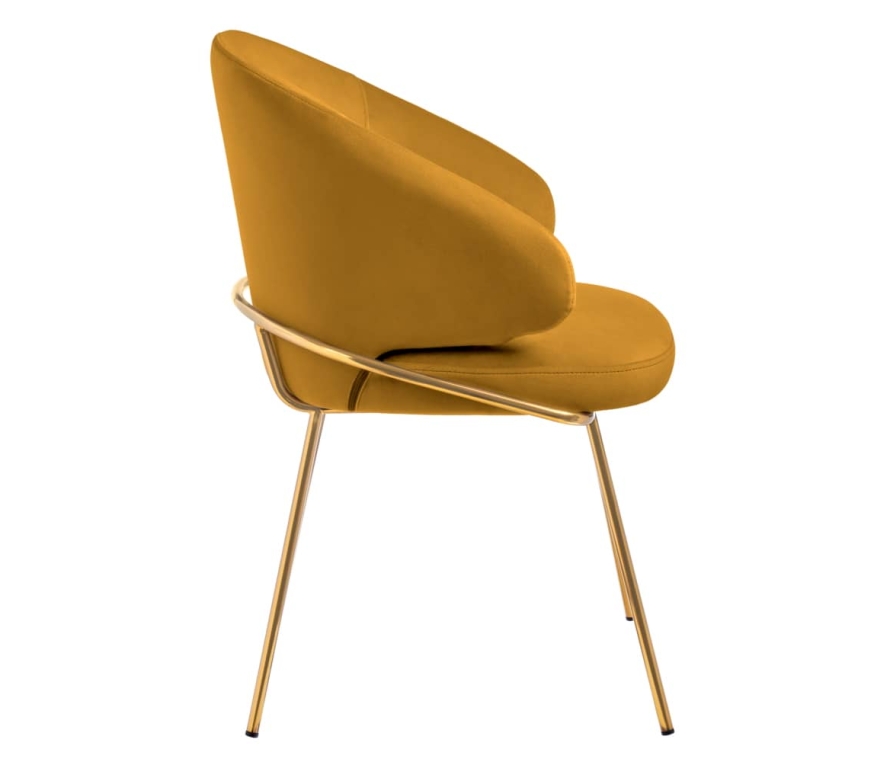 Полукресло Emil имеет широкую изогнутую спинку и мягкое сиденье, которые обеспечивают максимальный уровень комфорта. Ножки выполнены из полированной нержавеющей стали, они не подвержены коррозии и при правильном уходе сохранят свой первоначальный вид 50 лет. Все видимые сварочные швы на ножках тщательно отполированы. Напыление нитрид титана, обеспечивает ножкам натуральный цвет золота. Велюровая обивка обеспечивает невероятную мягкость и красивый глубокий цвет, износостойкость 100 000 циклов.