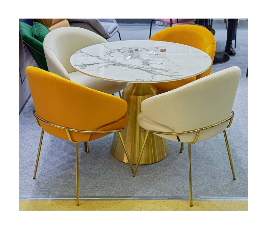 Полукресло Emil имеет широкую изогнутую спинку и мягкое сиденье, которые обеспечивают максимальный уровень комфорта. Ножки выполнены из полированной нержавеющей стали, они не подвержены коррозии и при правильном уходе сохранят свой первоначальный вид 50 лет. Все видимые сварочные швы на ножках тщательно отполированы. Напыление нитрид титана, обеспечивает ножкам натуральный цвет золота. Велюровая обивка обеспечивает невероятную мягкость и красивый глубокий цвет, износостойкость 100 000 циклов.