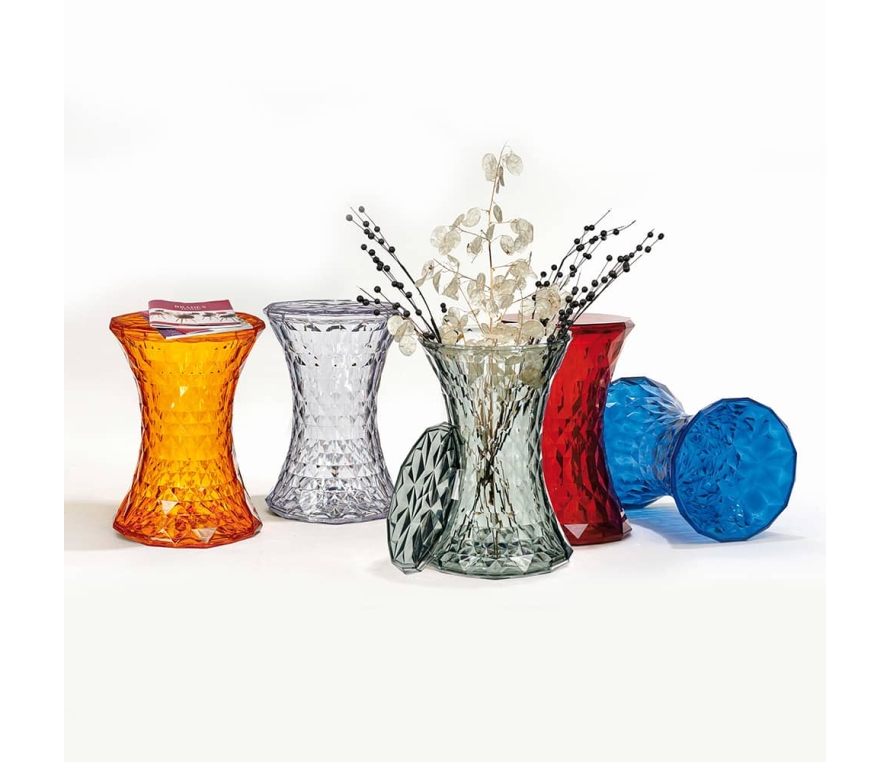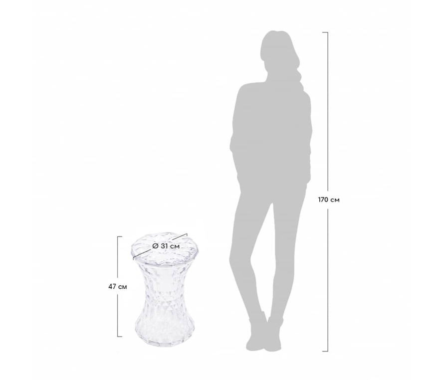 Стул-пуф Stone. Простая и симметричная форма напоминающая песочные часы, а поверхность состоящая из множества граней, отражающих свет, необычна и оригинальна. Уникальность изделия - это высокая функциональность, позволяющая использовать его в абсолютно любых жилых и общественных пространствах. Стул выполнен из прозрачного поликарбоната в разнообразной цветовой гамме.