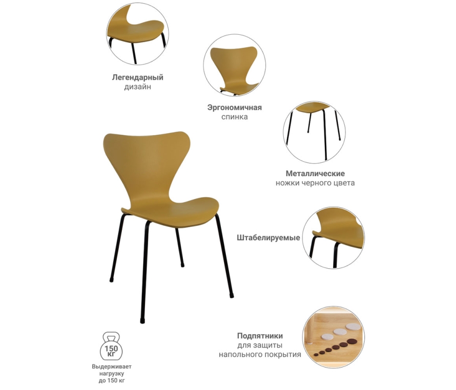 В элегантных и плавных очертаниях стула из серии SEVEN внимательный ценитель сразу узнает одну из самых популярных современных моделей, являющихся истинным эталоном скандинавской простоты и функциональности. Лаконичные изгибы, эргономичность, легкость и компактность – вот, пожалуй, главные отличительные особенности стульев SEVEN. Идеально подходящие для дома, офиса, а также для общественных пространств, стулья SEVEN в мгновение ока штабелируются в одну компактную конструкцию, предоставляя Вам и Вашим гостям простор для истинного полёта фантазии.