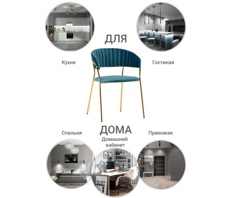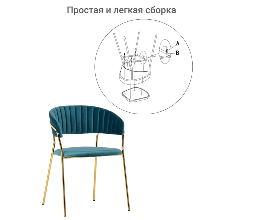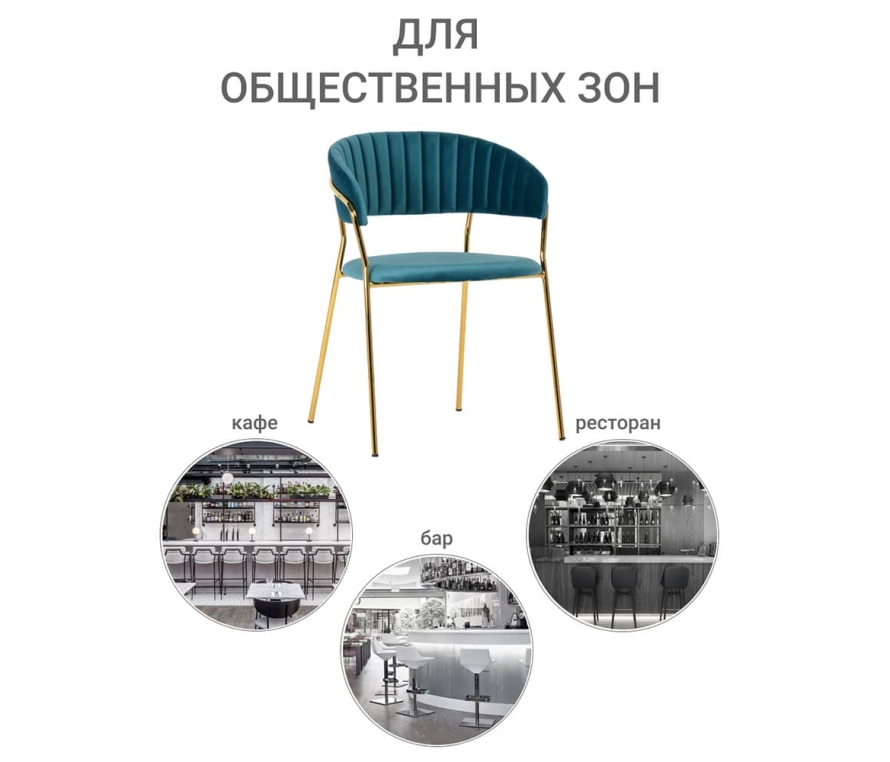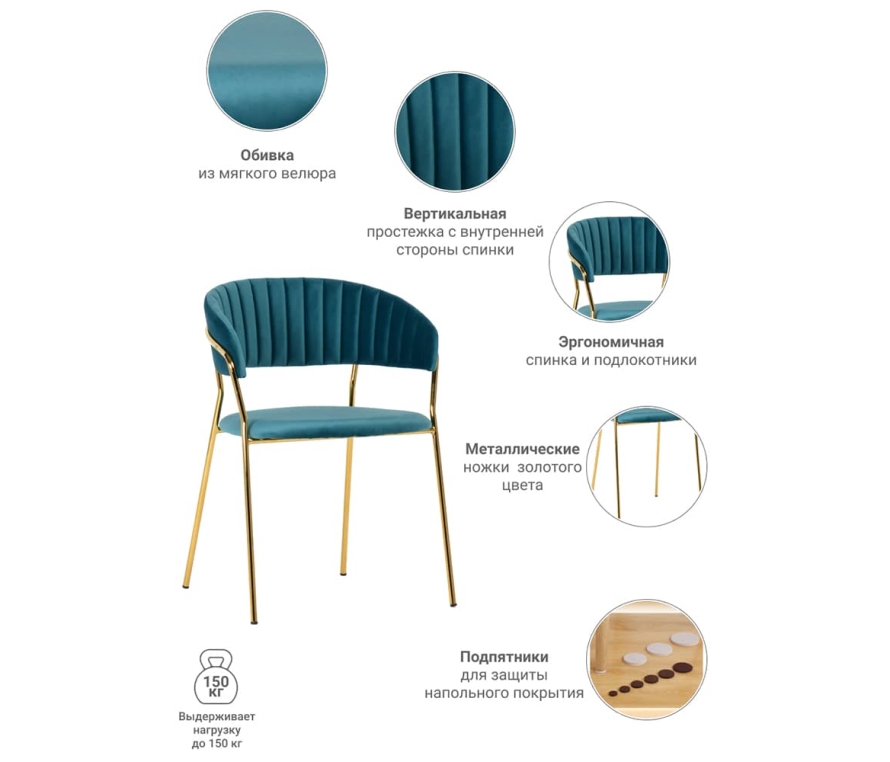 Мягкие спинка и сидение, оригинальный каркас и опоры с декоративным эффектом технологии золочения хромированных деталей.