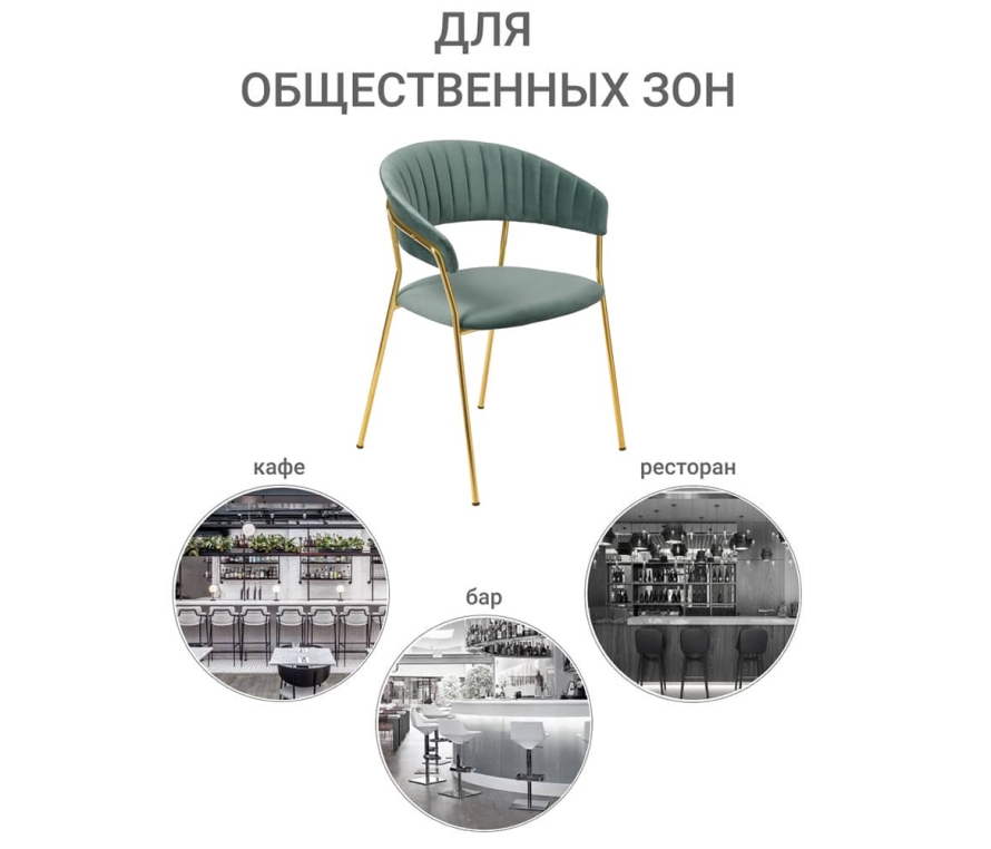 Мягкие спинка и сидение, оригинальный каркас и опоры с декоративным эффектом технологии золочения хромированных деталей.