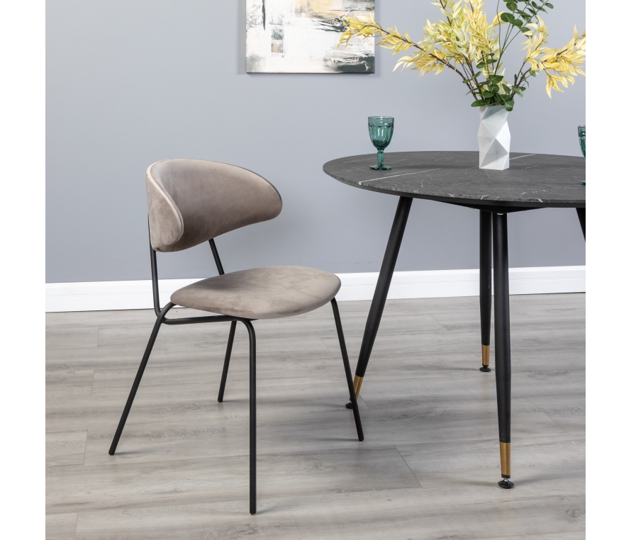 Современный обеденныйстул на металлических ножках с комфортной закруглённой спинкой. Мягкий микровелюр позволяет легко ухаживать за стулом, что делает их идеальным выбором для домашнего использования. Удобный каркас обеспечивает надежную поддержку и выдерживает нагрузку до 120 кг.