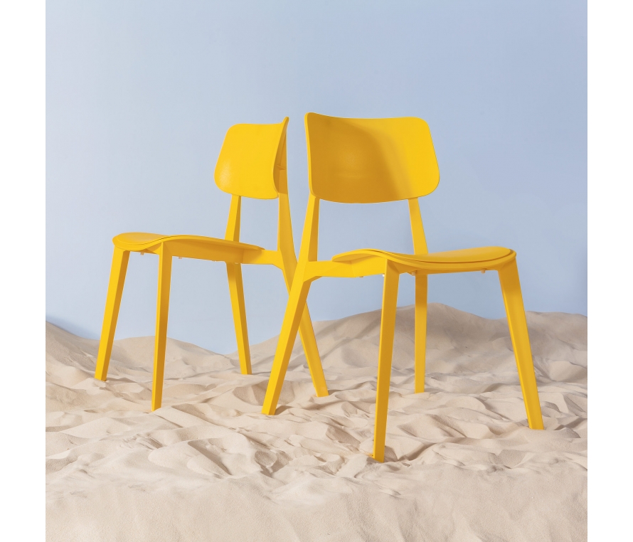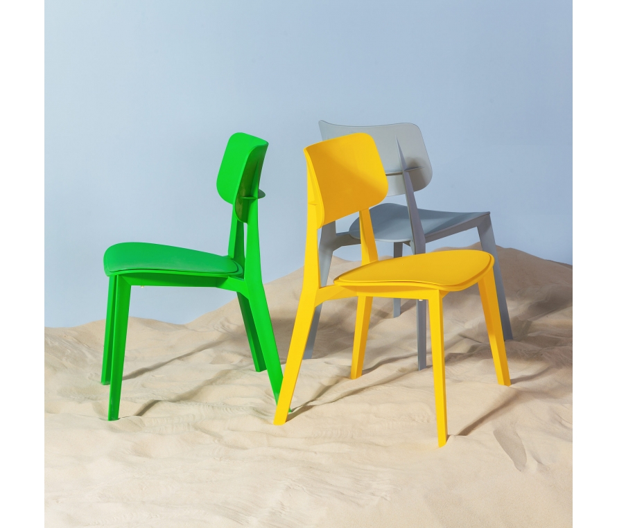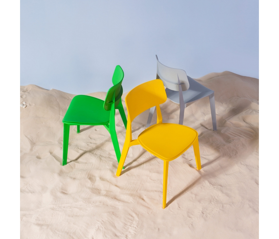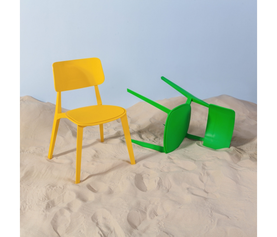 Характерное форма этих традиционных стульев происходит из 1950-х годов, но с применением новых материалов и технологий 21-го века , они были заново «изобретены» с новым функционалом , поддерживающим , благодаря устойчивости к ультрафиолетовым лучам ,возможность применения их на открытом воздухе, штабелируемость, разнообразие цветовых решений и отличную эргономику. Стул, изготовленный из полипропилена армированного стекловолокном, отлит под давлением методом газовой формовки. Это оригинальный стул как по своей физической композиции, так и по своему эстетическому воплощению, совершенно легко адаптируется к любому интерьеру.