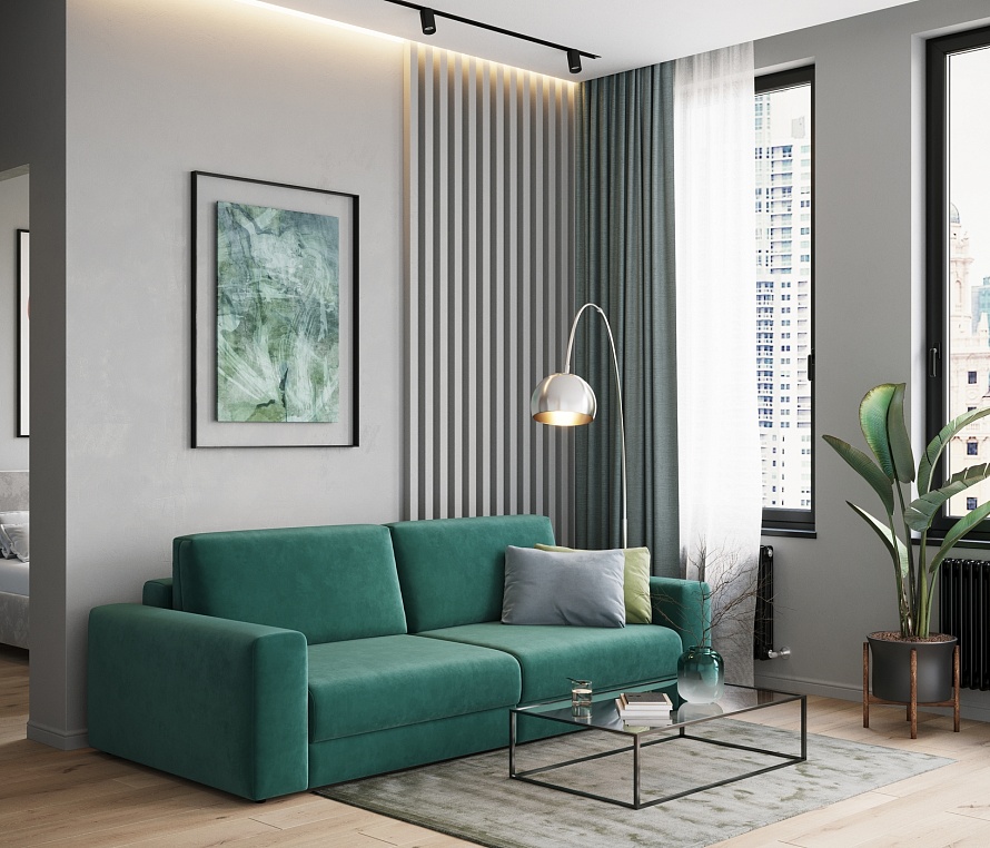Выбирая индивидуальную комплектацию, фактуру и цвет обивочного материала, а также расставляя акценты с помощью декора и формы опор, покупатель задает дизайну уникальное звучание.