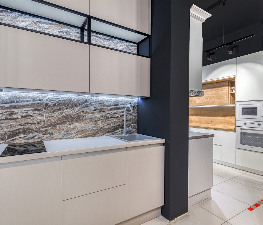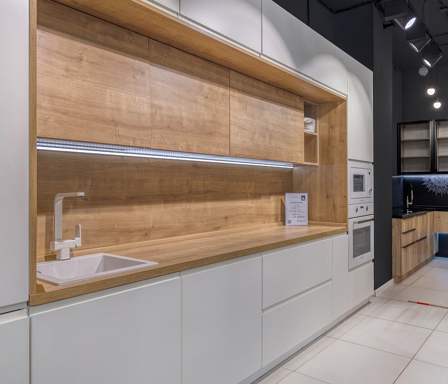 - применение высокотехнологичного оборудования, позволяющего создавать эстетичные, надежные, износостойкие кухни современного дизайна;